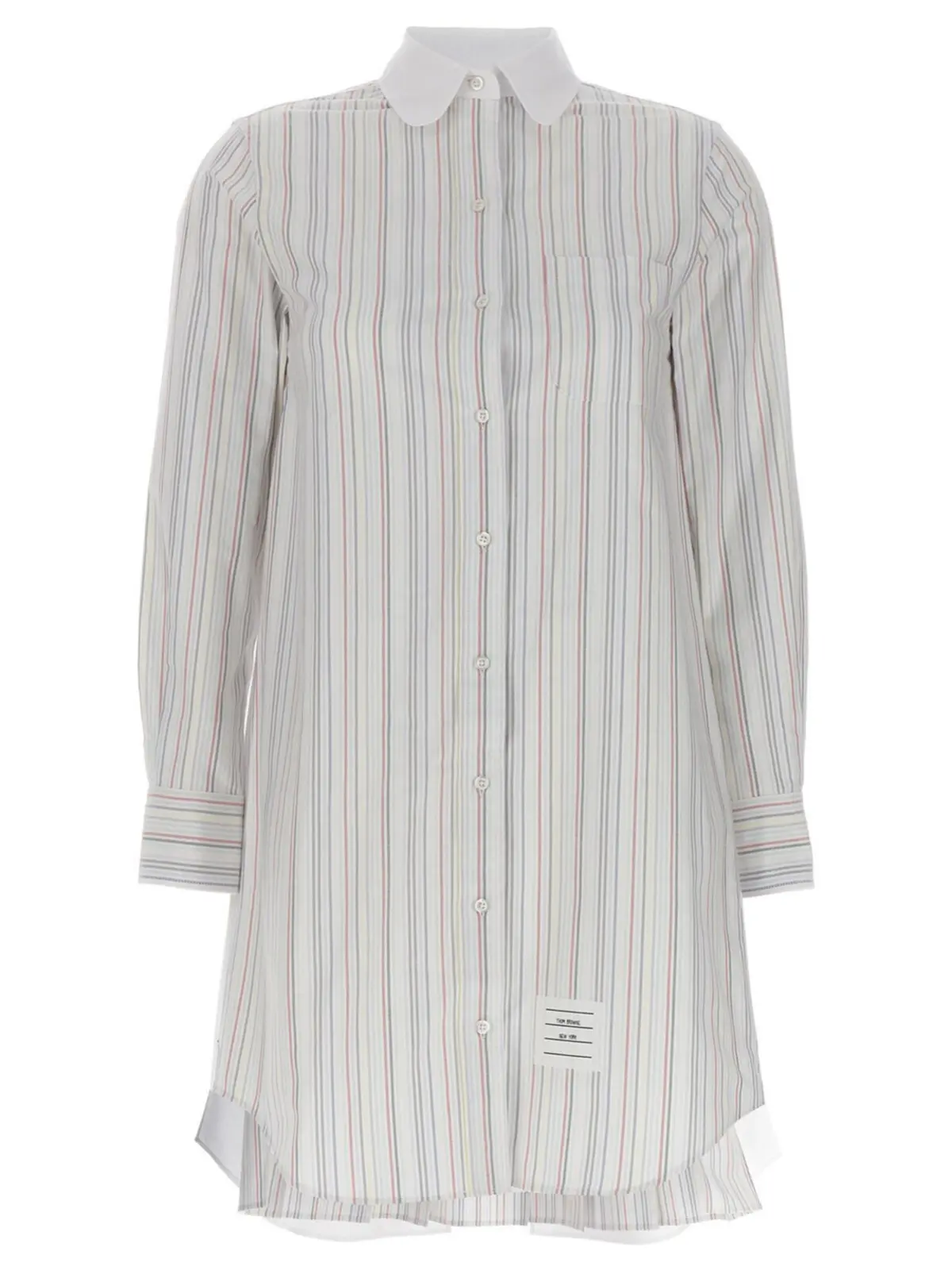 Сукня-сорочка в смуги Thom Browne – це багатокольорова жіноча сукня-сорочка зі стьобаним візерунком. Виготовлена з 100% бавовни, вона має застібку на ґудзики, довгі манжети на рукавах, передній кишеню та вставки з контрастною тканини на спинці.