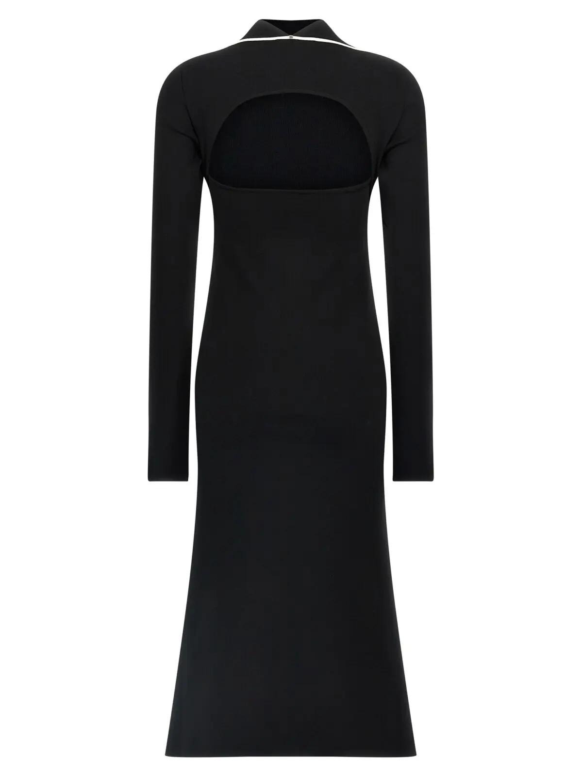 Сукня Sportmax Operoso вражає елегантним поєднанням чорного та білого кольорів, виконана з високо якісного трикотажу на основі віскози, поліаміду, поліестеру та еластану. Інноваційний дизайн з піднятим коміром, вирізом на спині та об’ємною спідницею надає виробу витонченості та жіночності. Довгі рукави забезпечують комфорт, а контрастні деталі підкреслюють стиль. Ця сукня є ідеальним вибором для будь-якої нагоди, поєднуючи розкіш і функціональність, а також відзначається екологічним підходом до виробництва. Обираючи її, ви підкреслюєте свій статус у світі моди.