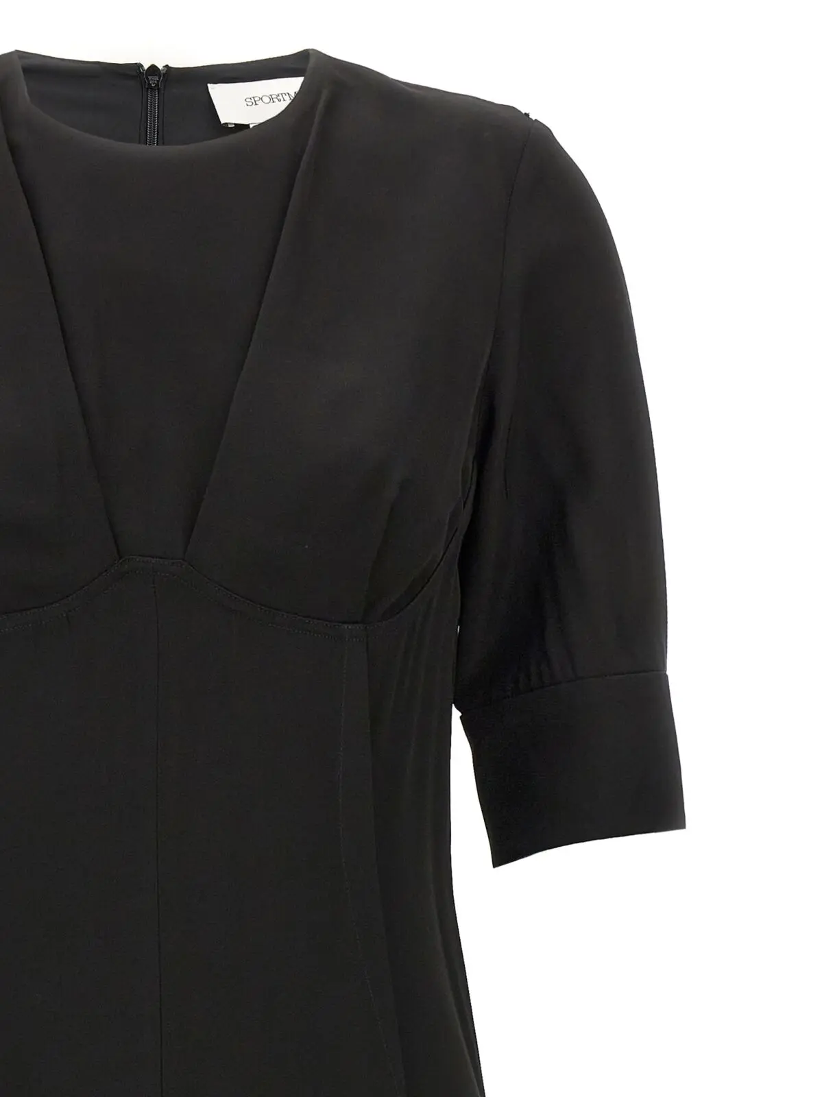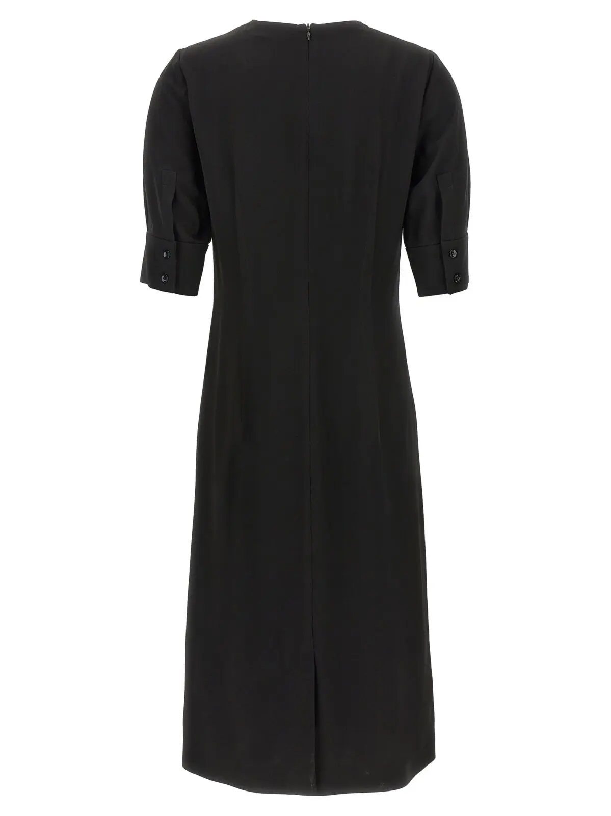 Сукня Sportmax Sele – це ідеальний вибір для сучасних жінок, які цінують комфорт та стиль. Виготовлена з 100% віскози, ця чорна сукня відрізняється високою якістю та приємною на дотик тканиною. Круглий виріз горловини додає елегантності, а короткі рукави з манжетами та ґудзиками підкреслюють унікальність дизайну.