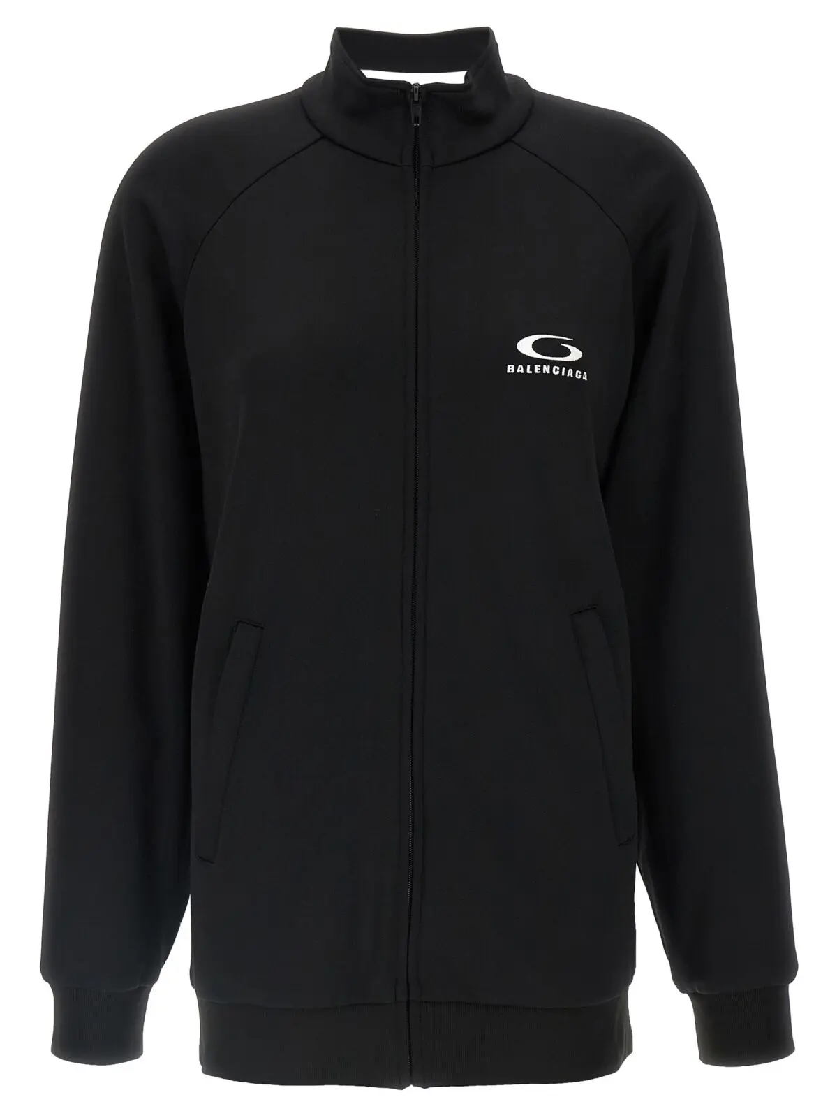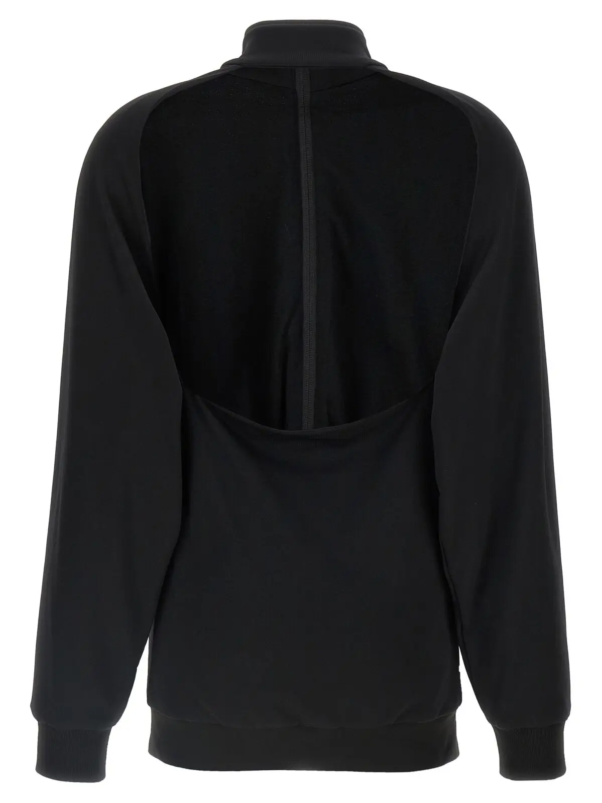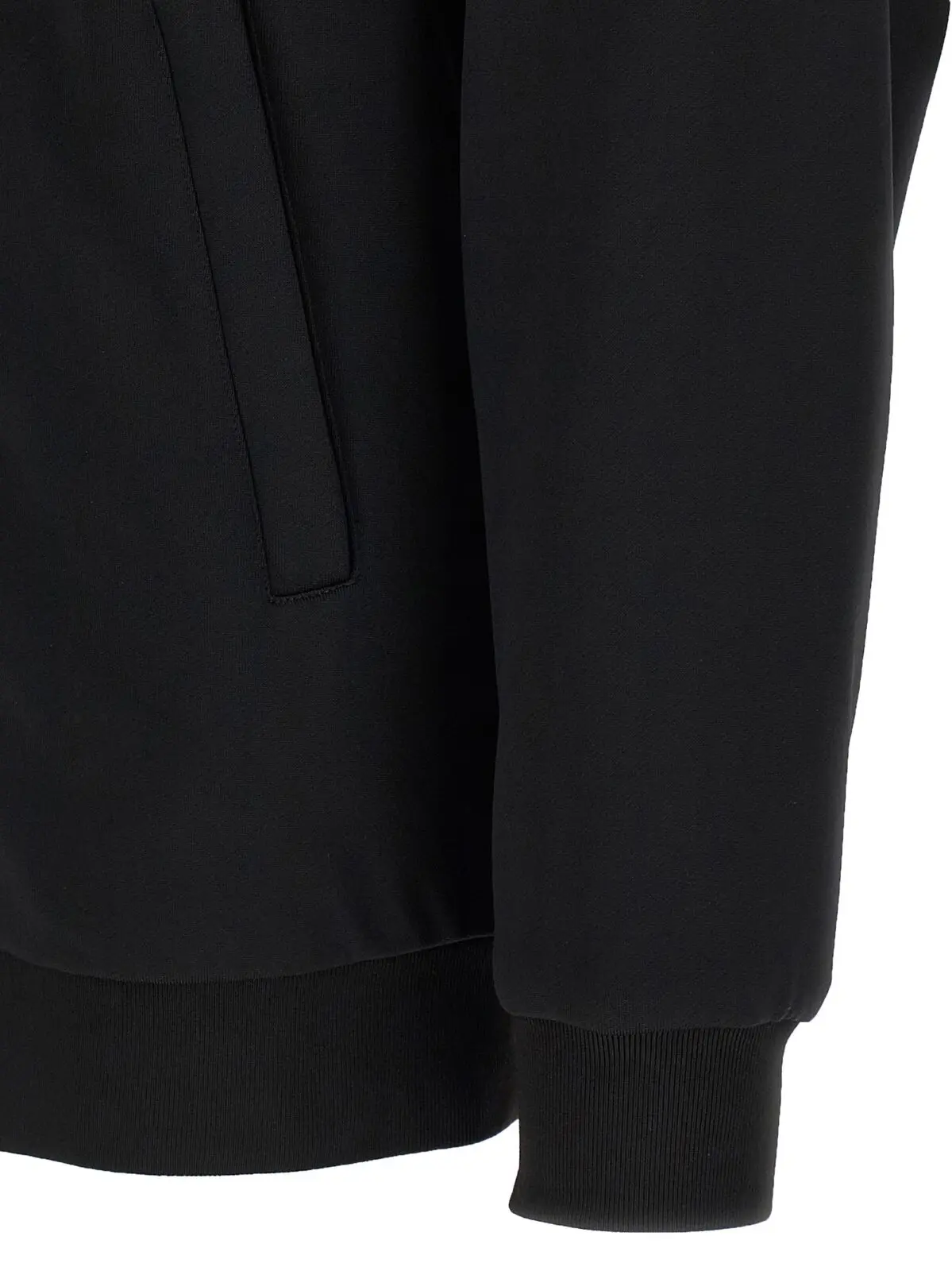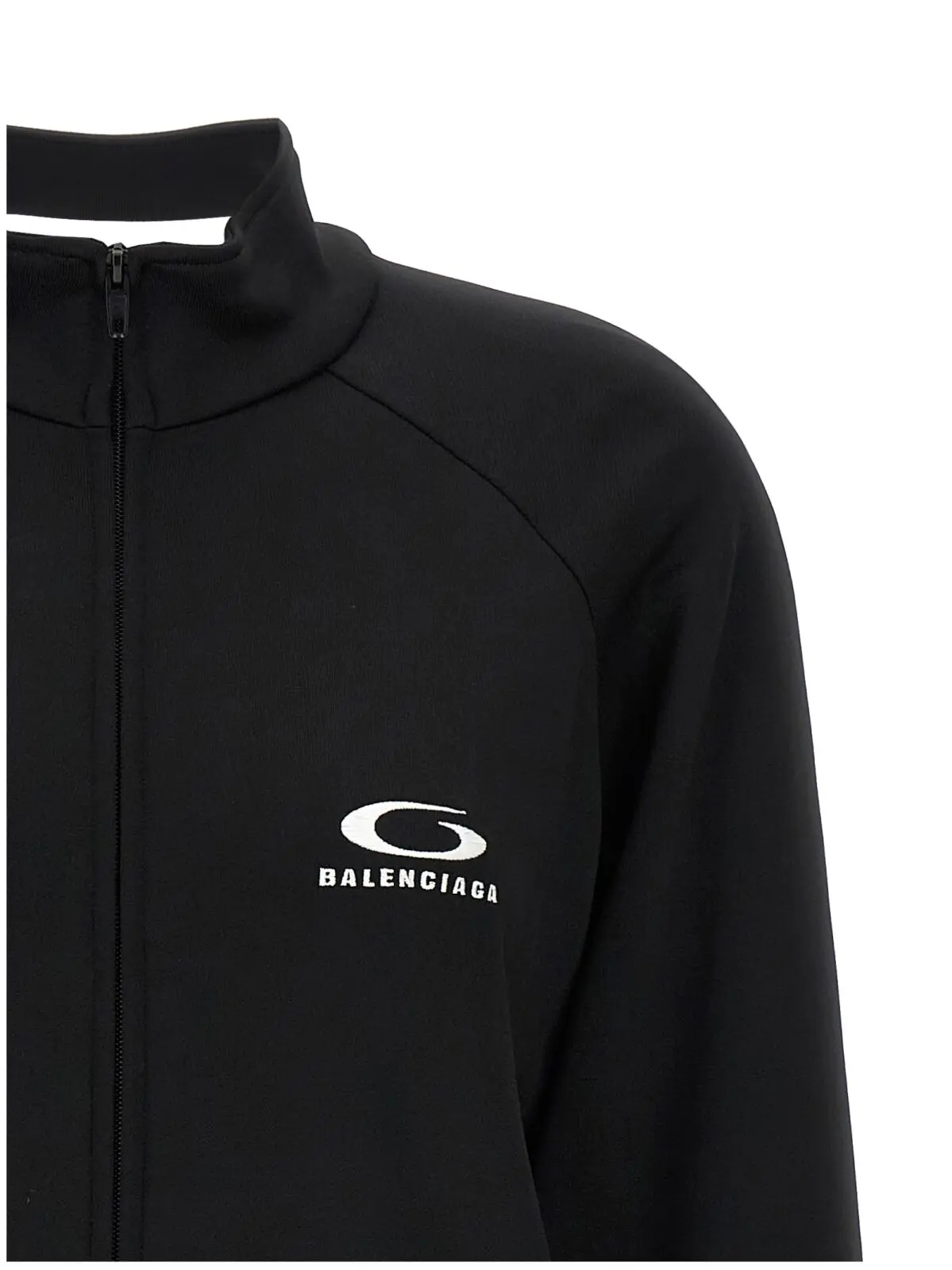 Чорна міні-сукня з довгими манжетами поєднує в собі елегантність та комфорт завдяки унікальному поєднанню поліаміду і бавовни. Інноваційний дизайн із великим вирізом на спині, застібкою на блискавку спереду та вишитим логотипом підкреслює статус і неповторний стиль її власниці.