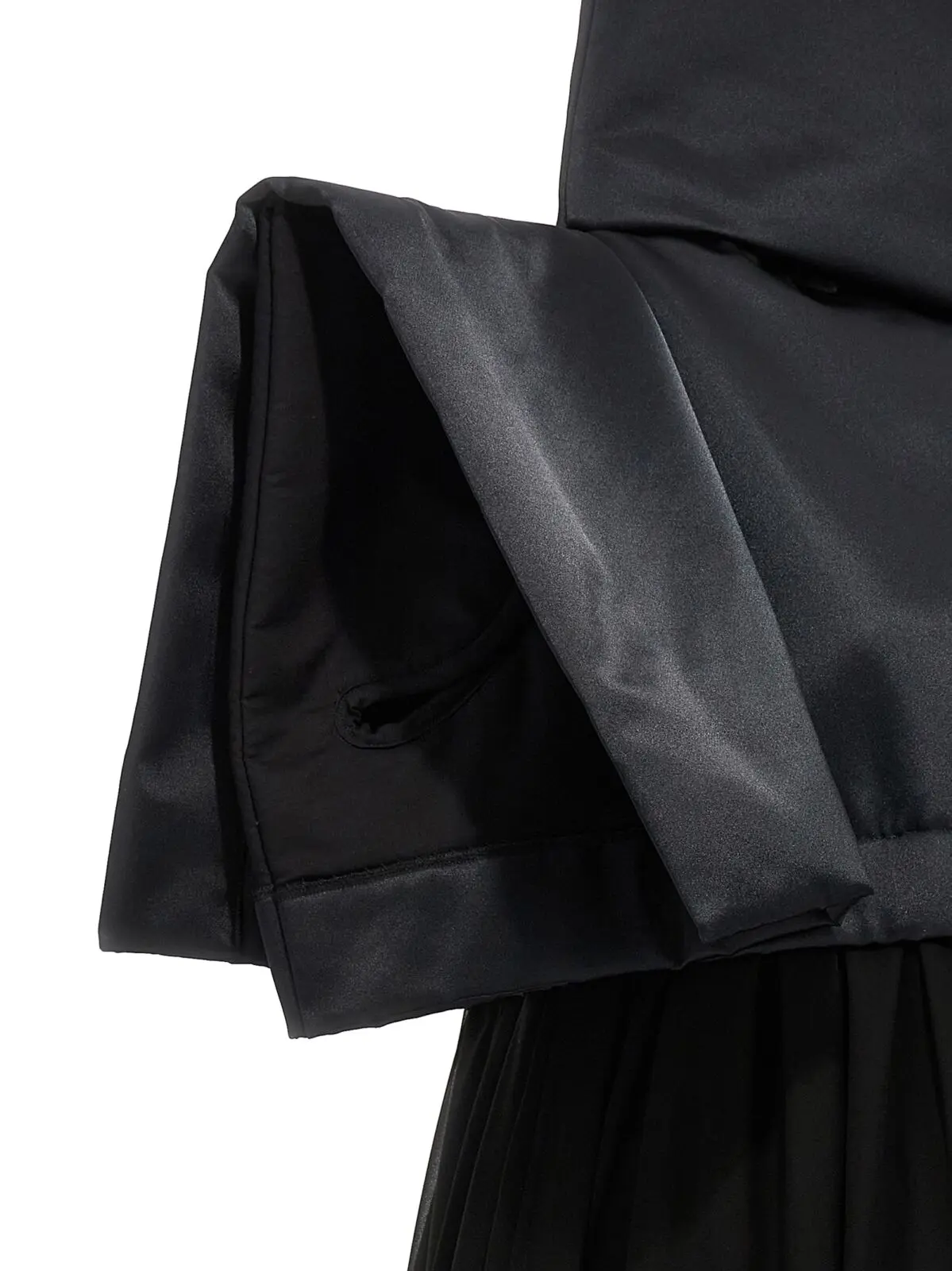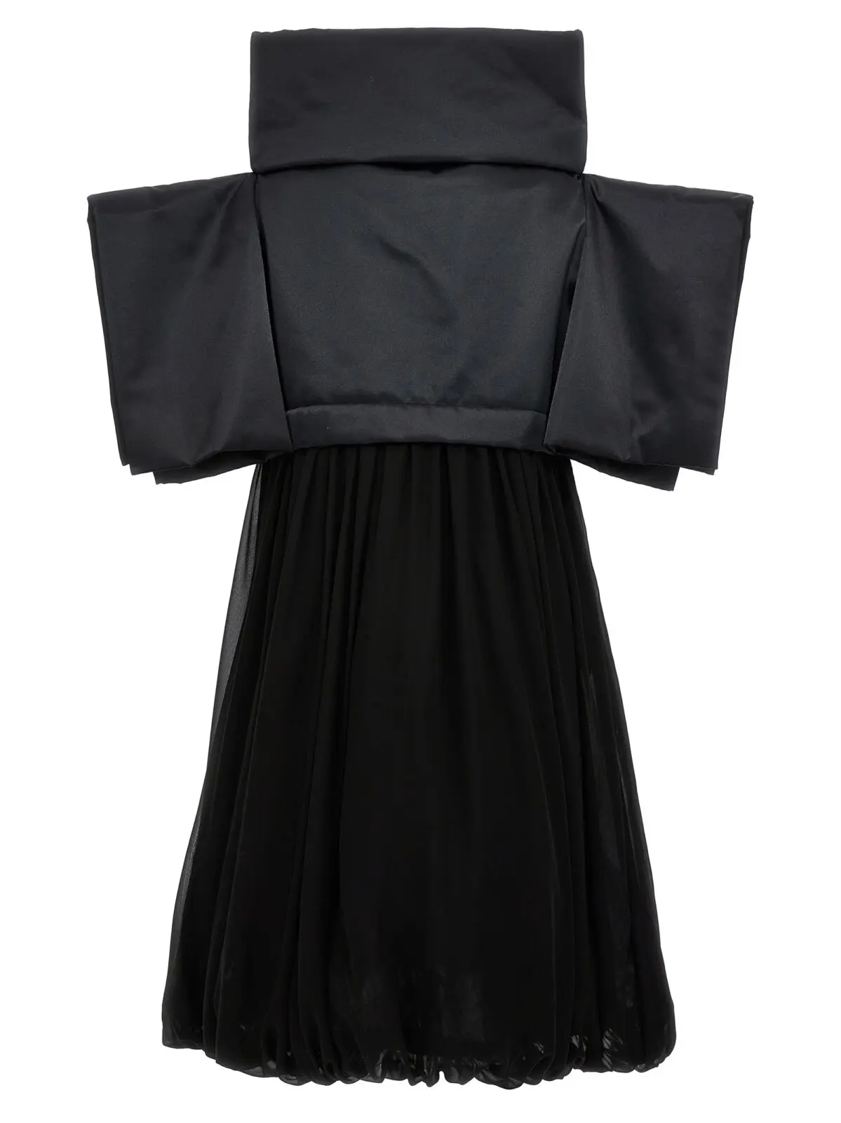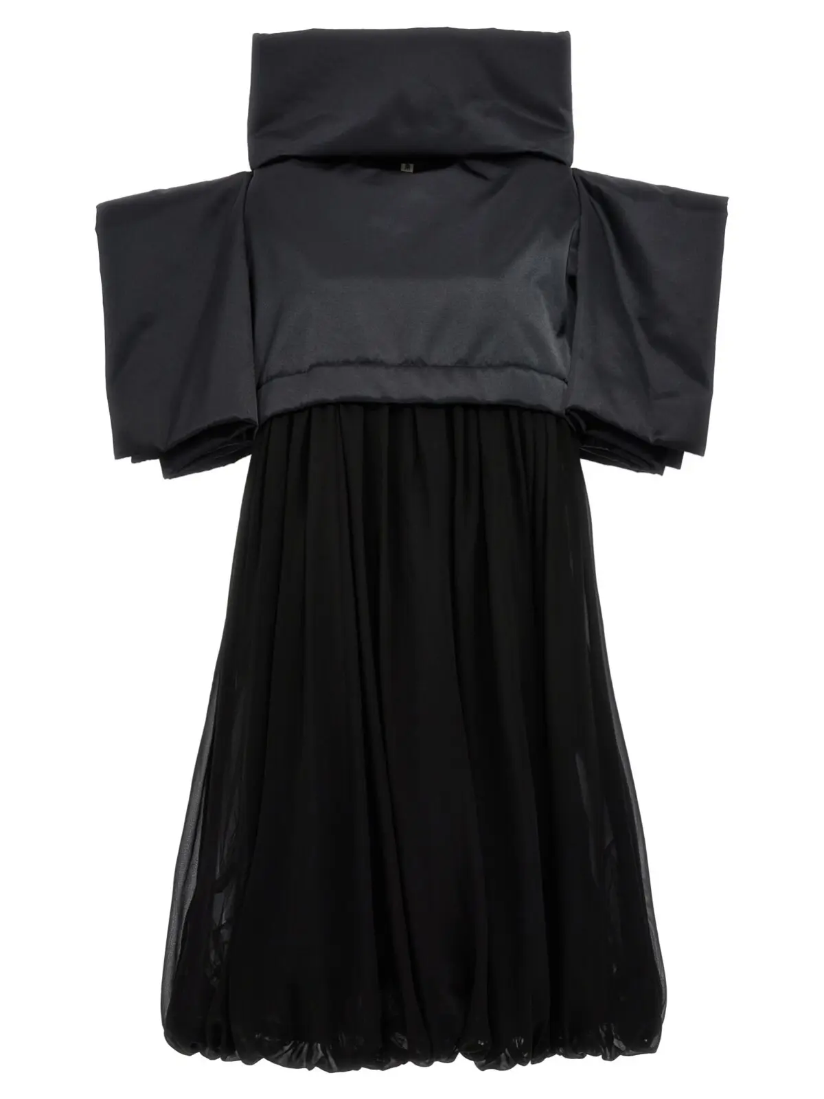 Чорна сукня Two-material від Comme Des Garçons – це неперевершений вибір для стильних жінок, які хочуть виглядати неперевершено. Ця сукня з двома матеріалами має верх з наповненим та атласним полотном, квадратні рукави та високий човник. Частина спідниці виконана з оборками з тюлю. Вона виготовлена з 100% поліестеру, що забезпечує комфорт та довговічність. Завдяки своєму стильному дизайну та вишуканому крою, ця сукня приверне увагу всіх навколо вас. Ви будете виглядати неперевершено та впевнено в будь-якій ситуації. Замовте цю чорну сукню Two-material від Comme Des Garçons прямо зараз та станьте центром уваги!