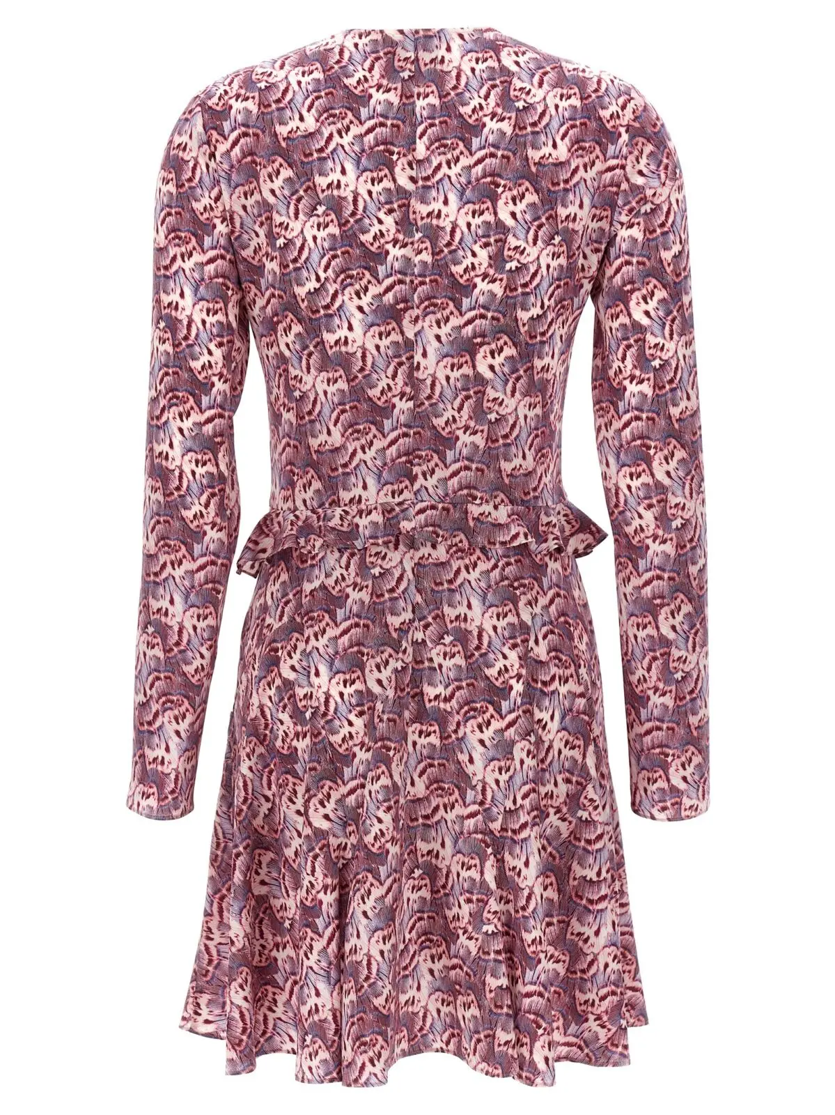Сукня Usmara від Isabel Marant – це багатокольорова жіноча сукня з надрукованої тканини. Модель міні з оборкою на спідниці, довгими рукавами і V-подібним вирізом.