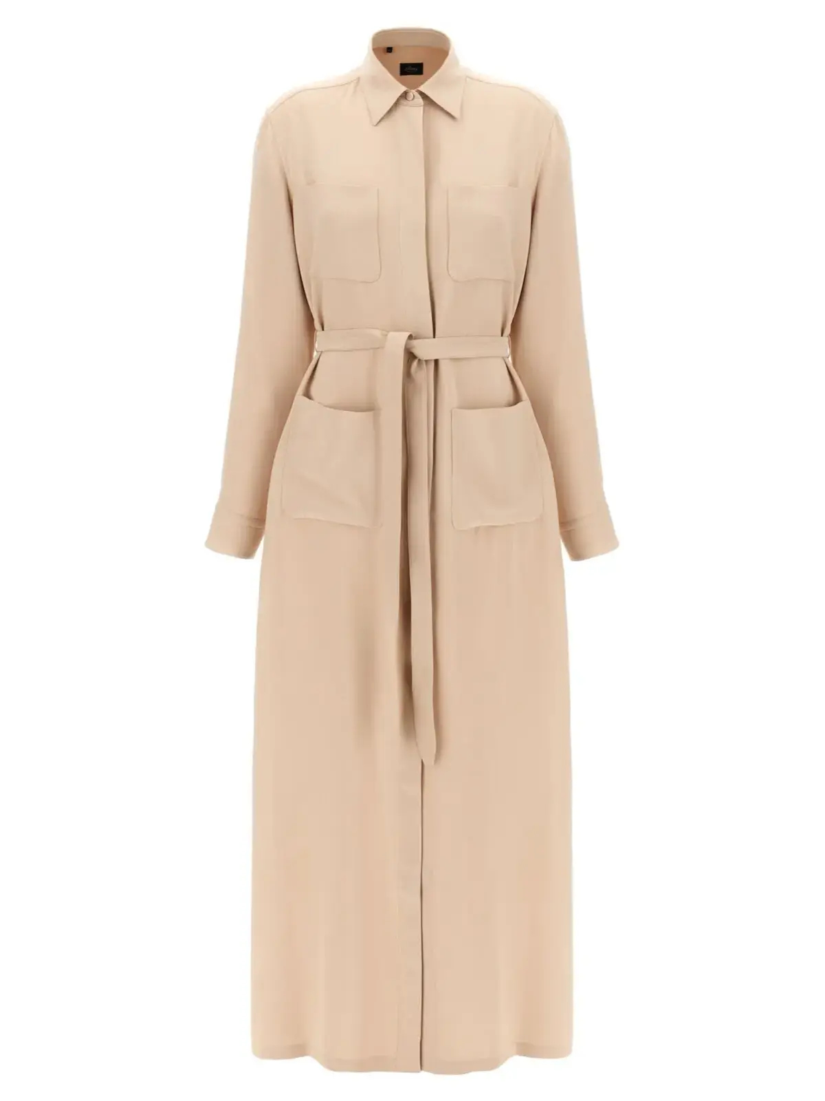 Вишукана сукня з шовкового кеді рожевого відтінку поєднує в собі елегантний дизайн chemisier з прихованою застібкою, довгими манжетами та практичними кишенями. Знімний пояс підкреслює талію, створюючи неперевершений образ статусу і стилю, що підкреслює ваш індивідуальний шарм.