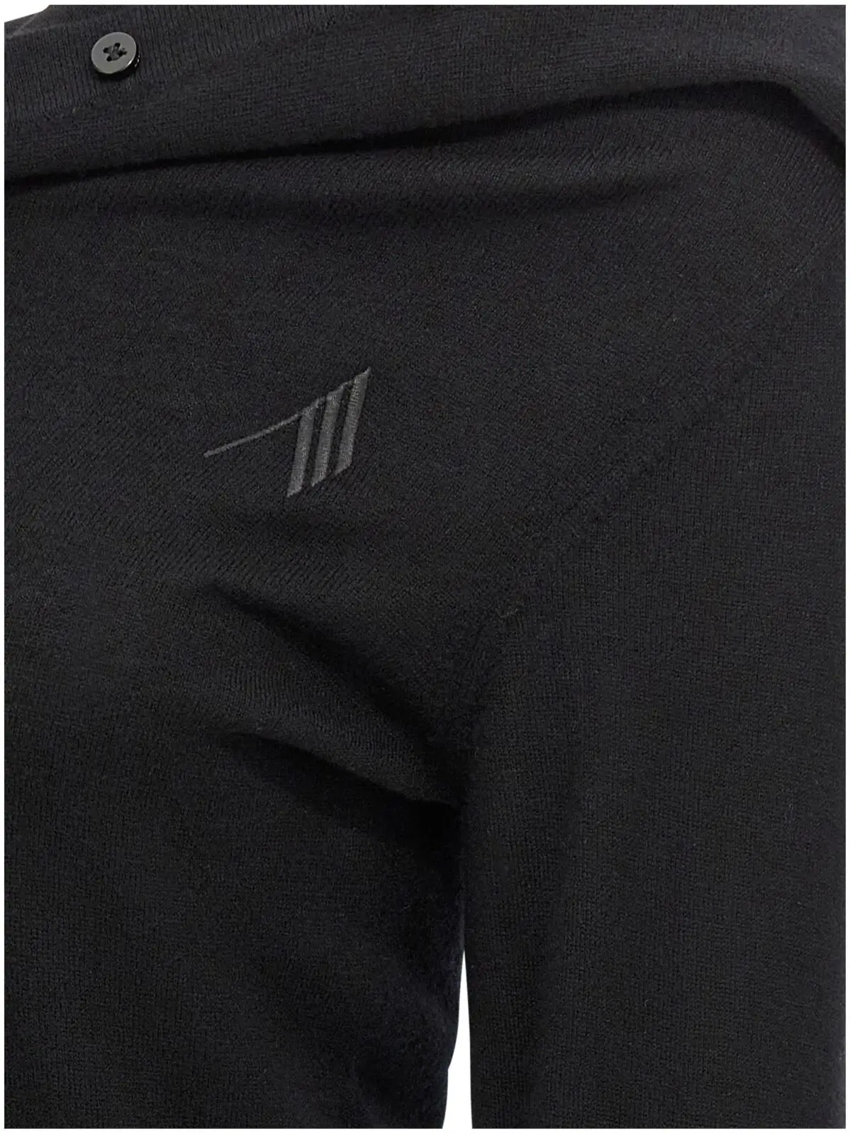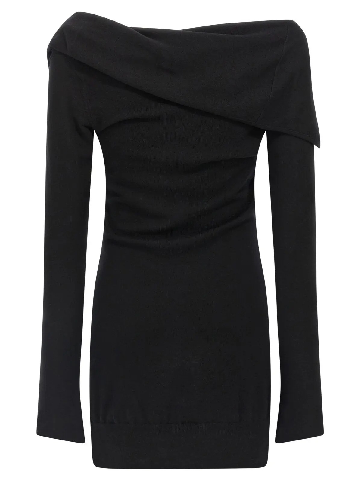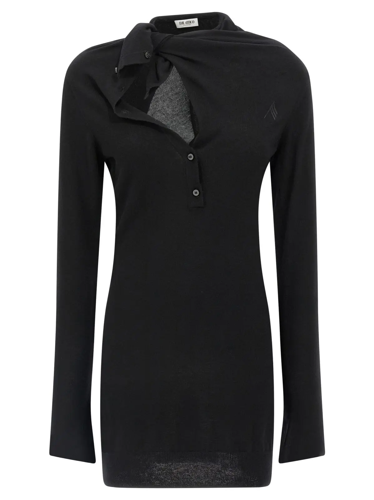 Вишукана чорна сукня з мінікроєм виконана з ідеального поєднання 80% першосортної вовни та 20% кашеміру, що забезпечує неперевершену м’якість і тепло. Модульний комір-шаль, витончені довгі розкльошені рукави та тонкий вишитий логотип створюють гармонійний баланс інноваційного дизайну та елегантності, підкреслюючи статус і стиль власниці.