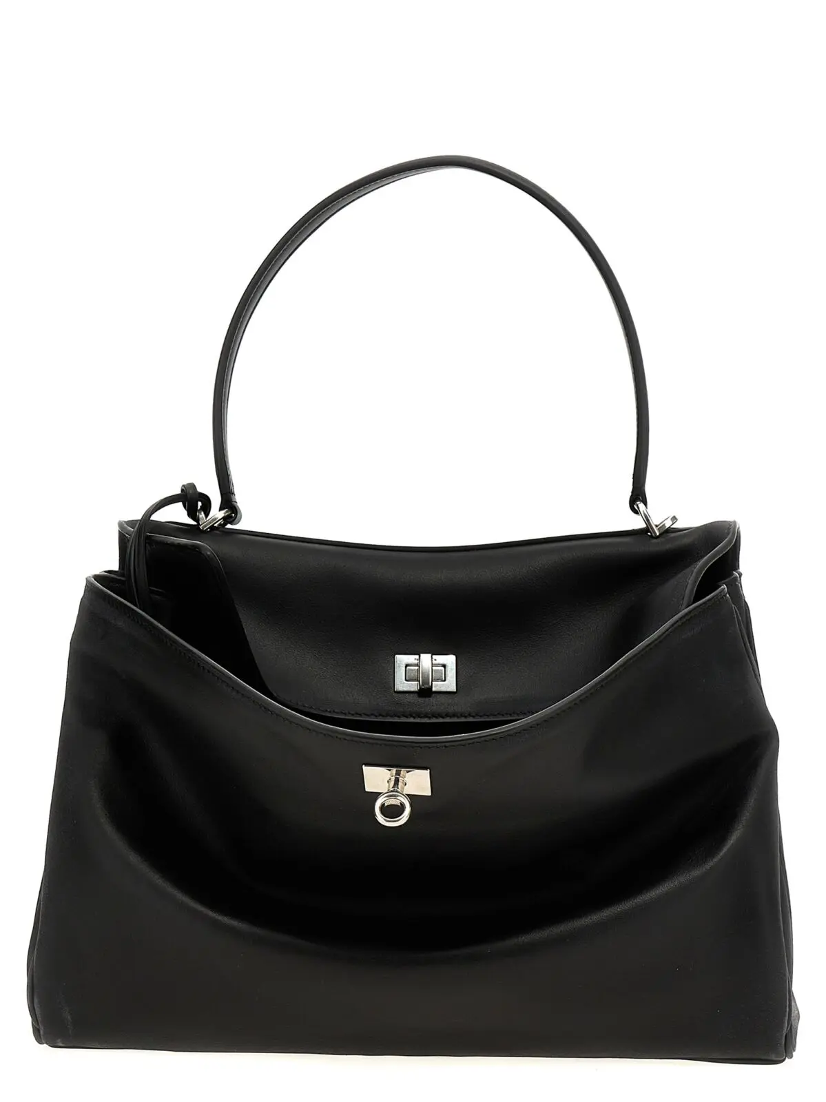 Сумка Balenciaga Medium Rodeo в чорному кольорі виготовлена з телячої шкіри з ефектом зношеності, що надає їй унікальний характер. Вона оснащена шкіряною ручкою та знімним плечовим ременем, що забезпечує зручність у носінні. Антикварна металева фурнітура додає елегантності, а деталі з ключами знімних кілець підкреслюють інноваційний дизайн. Ця сумка є втіленням статусу та стилю, ідеально підходить для сучасних жінок, які цінують якість та універсальність у своєму гардеробі.