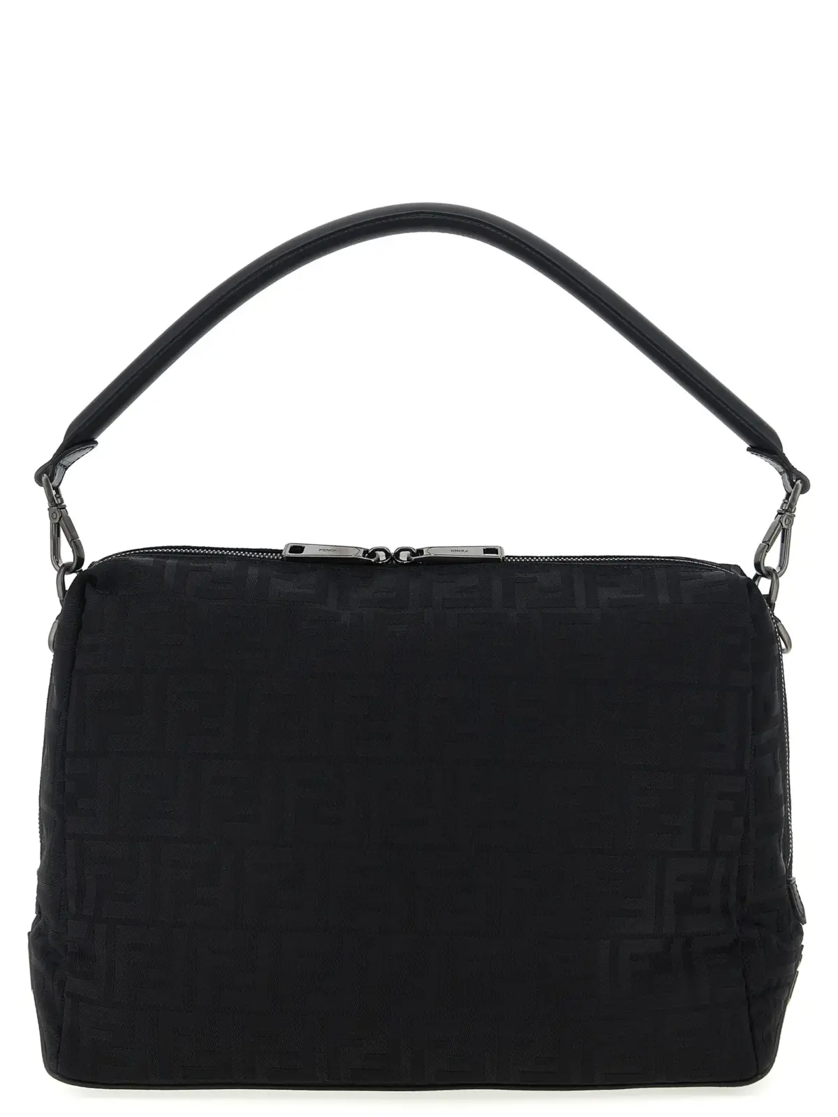 Чорна сумка через плече Fendi Lui Large виготовлена з високоякісного нейлону з м’якою основою та ручкою з гладкої телячої шкіри в тон. Вишуканий металевий логотип із сатиновим рутенієвим покриттям, верхня застібка на блискавку, регульований і знімний плечовий ремінь забезпечують максимальний комфорт і універсальність. Цей аксесуар поєднує інноваційний дизайн із бездоганною якістю, підкреслюючи статус і стиль сучасного чоловіка.