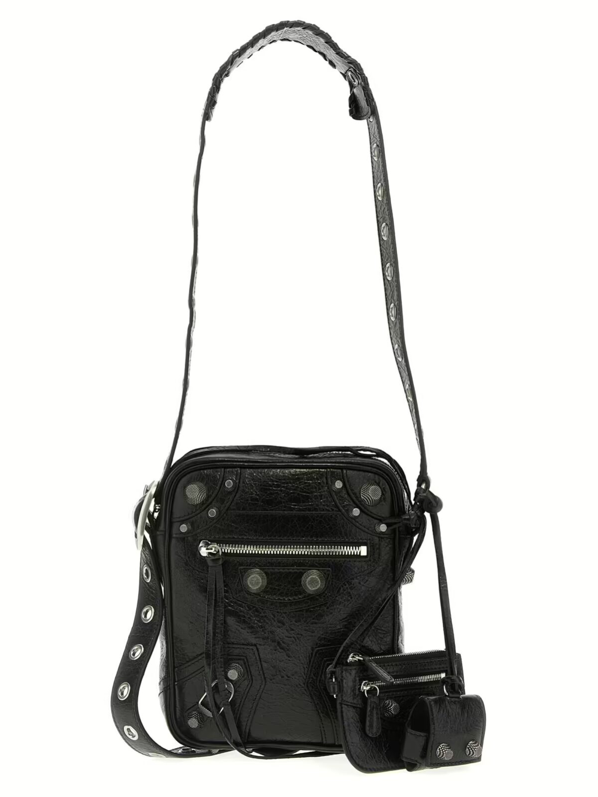 Ця чоловіча сумка через плече Le Cagole Men від Balenciaga виготовлена зі 100% баранячої шкіри Arena lambskin. Вона має застібку-блискавку, регульований наплічний ремінь, а також знімний чохол для навушників AirPods Pro та знімну клатч із застібкою-блискавкою. Поєднуючи стиль та функціональність, ця сумка стане чудовим вибором для сучасного чоловіка.
