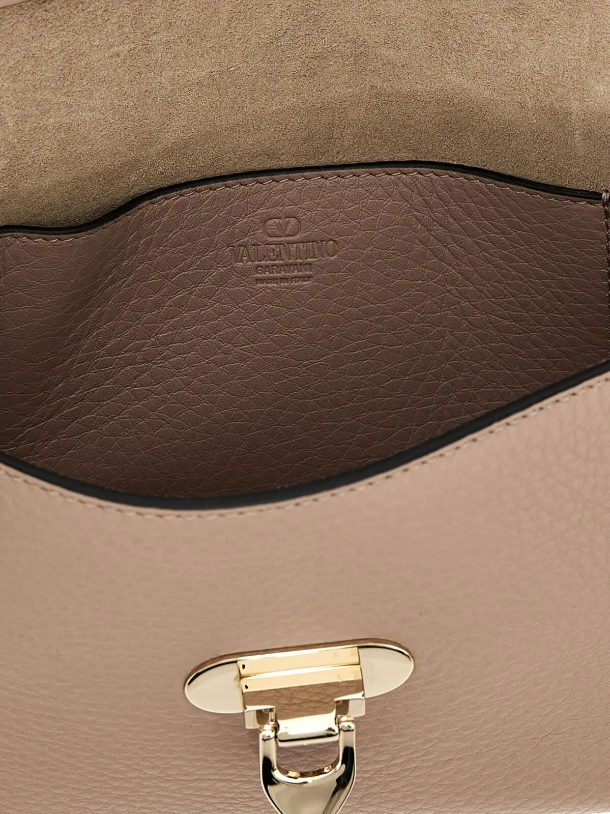 Сумка через плече Valentino Garavani Rockstud виконана з високоякісної телячої шкіри, що надає їй розкішного вигляду та тривалої міцності. Декорована характерними стрижнями, вона підкреслює індивідуальність та елегантність власниці. Закривається на клапан з гачком, має регульований плечовий ремінь, що забезпечує комфорт у використанні. Ця універсальна модель вдало доповнить будь-який образ, надаючи статусу та стилю.
