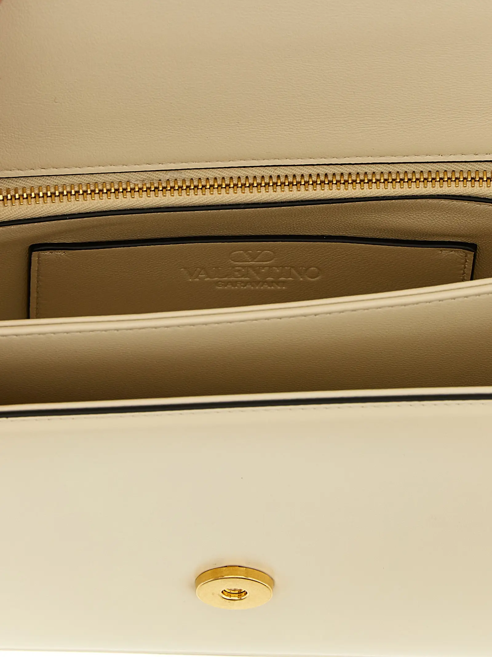Сумка через плече Valentino Garavani Vain виготовлена з блискучої телячої шкіри найвищої якості, має магнітну застібку з вишуканою металевою деталлю у вигляді логотипа в антикварному стилі та регульований ланцюжковий ремінь. Внутрішня підкладка з м’якої шкіри напа підкреслює елегантність і функціональність, роблячи цю модель символом статусу, стилю та інноваційної вишуканості.