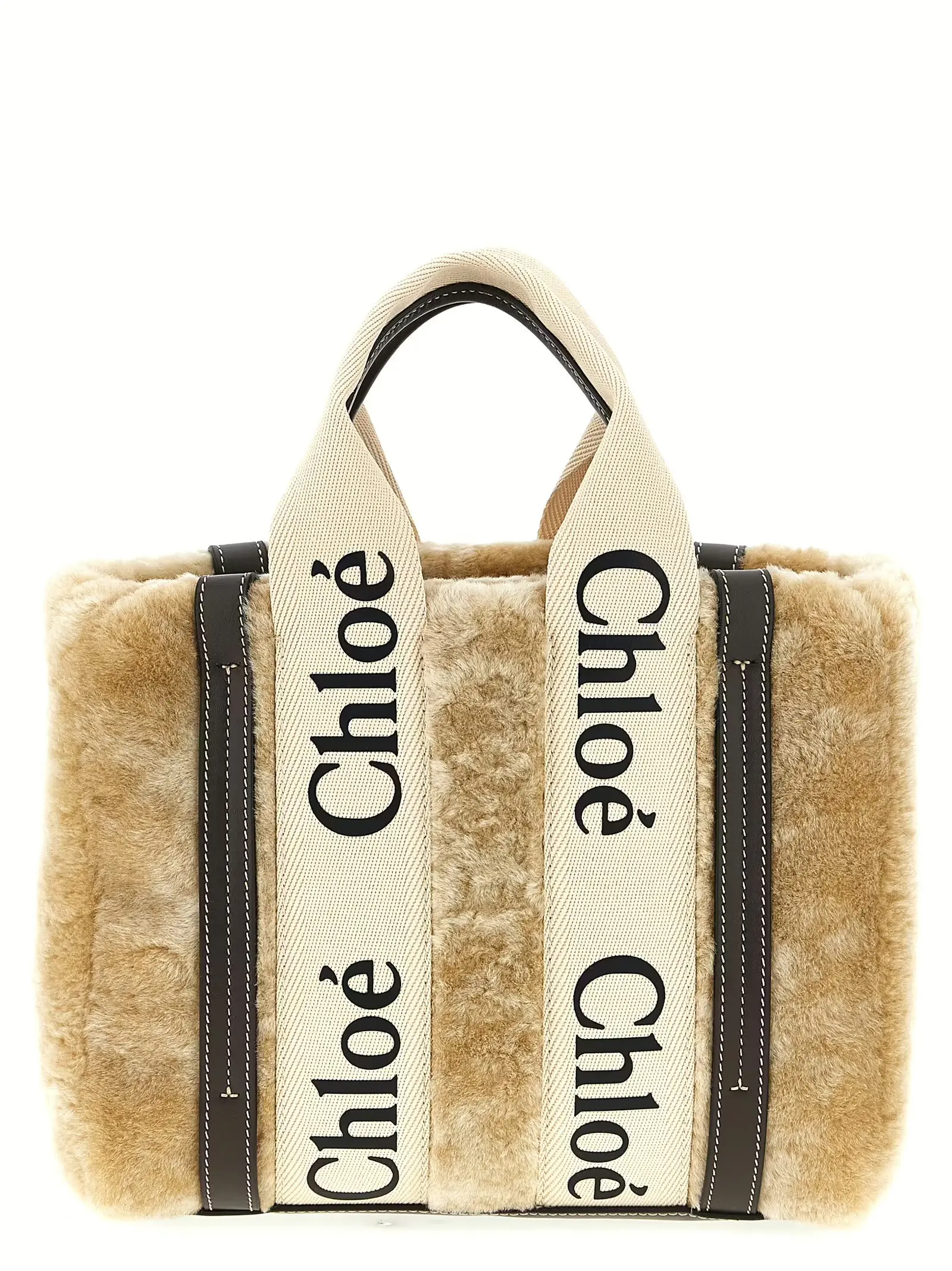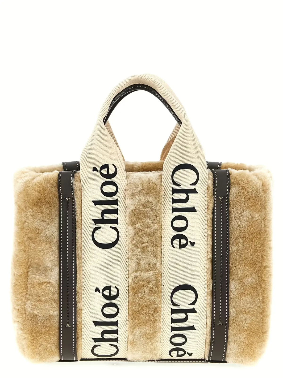Елегантна жіноча сумка Chloé Woody Small виконана з натуральної овечої шкіри високої якості, доповнена контрастними шкіряними деталями та двома надійними ручками з жакардового бавовняного полотна з великим логотипом. Знімний і регульований плечовий ремінь забезпечує максимальний комфорт і універсальність, підкреслюючи бездоганний стиль і статус власниці.