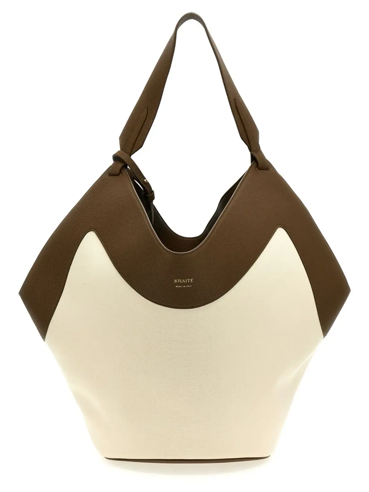Сумка для покупок Khaite Medium Lotus Tote вражає своїм багатокольоровим дизайном, поєднуючи елегантний шкіряний та канвасовий матеріали. Виготовлена з високоякісної телячої шкіри та канвасу, вона забезпечує тривалу експлуатацію. Впізнаваний тиснений логотип на передній частині підкреслює статус бренду. Завдяки фіксованій ручці та знімному внутрішньому клутчу, ця сумка є ідеальним вибором для сучасної жінки, яка цінує стиль, функціональність та інноваційність у своїх аксесуарах.