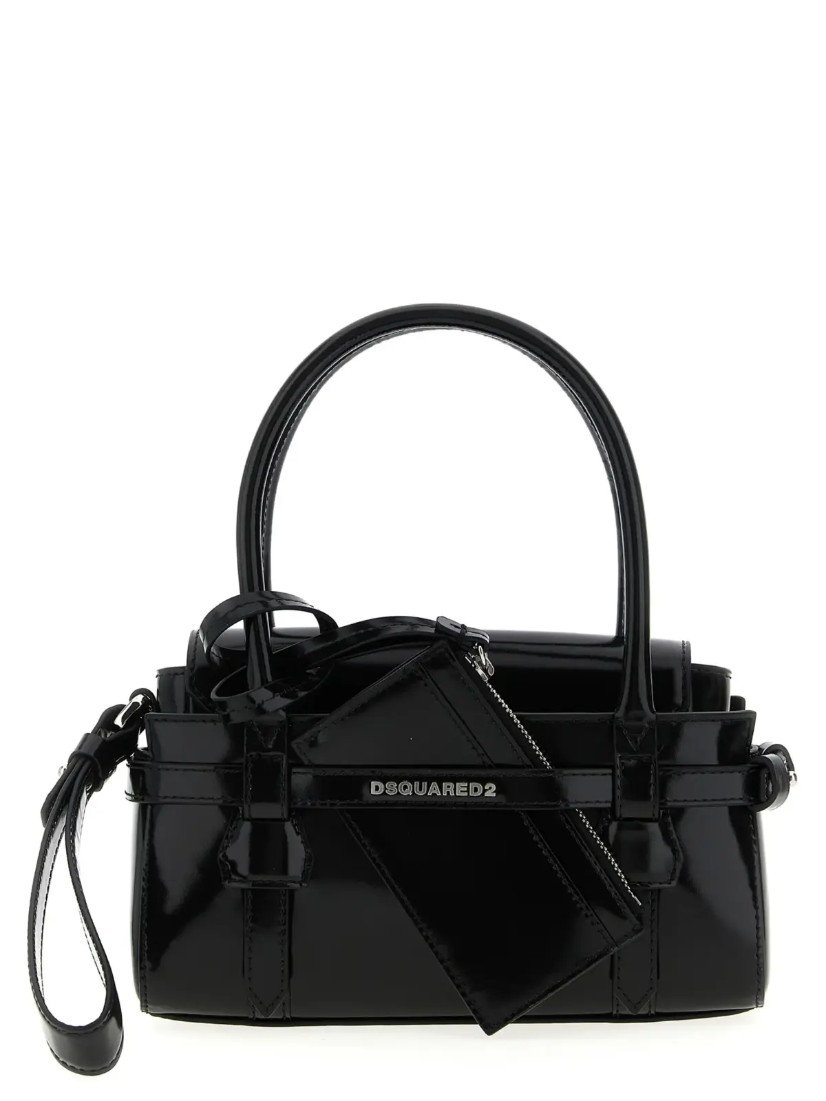 Вишукана сумка Dsquared2 Twin Mini виготовлена з натуральної шкіри теляти, що гарантує неперевершену міцність і елегантність. Чорний лакований дизайн з металевим логотипом спереду підкреслює статус та стиль, а функціональність забезпечує знімний плечовий ремінь, внутрішній клатч і монетниця, що робить цю модель ідеальним аксесуаром для будь-якого образу.