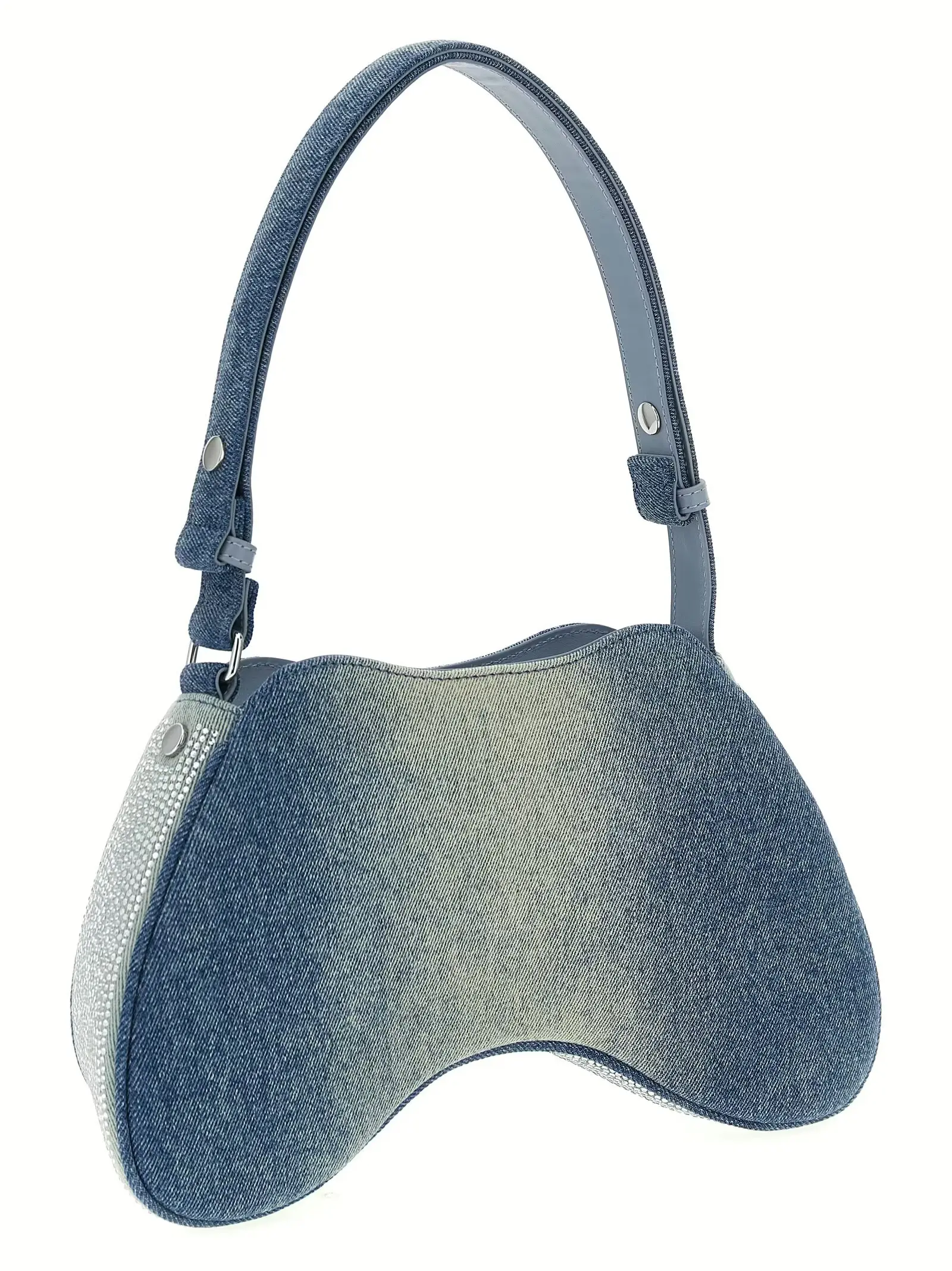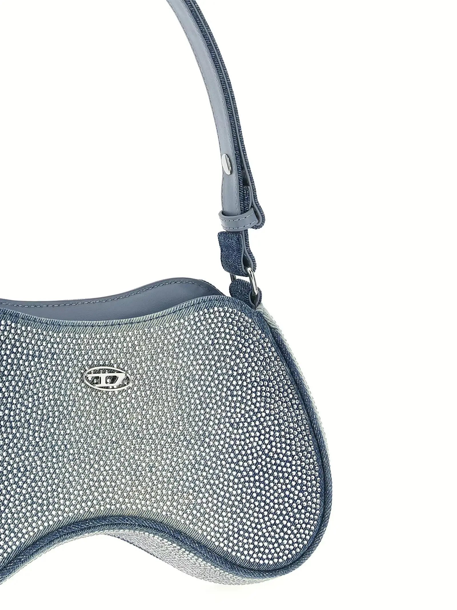 Ця жіноча сумка крос-боді виконана з високоякісного бавовняного деніму з додаванням поліуретану, оснащена блискучими стразами на передній панелі та металевим логотипом, що підкреслює витонченість. Зручна застібка на блискавці та регульований ремінь забезпечують функціональність і універсальність, додаючи образу неповторного статусу і стильного шарму.