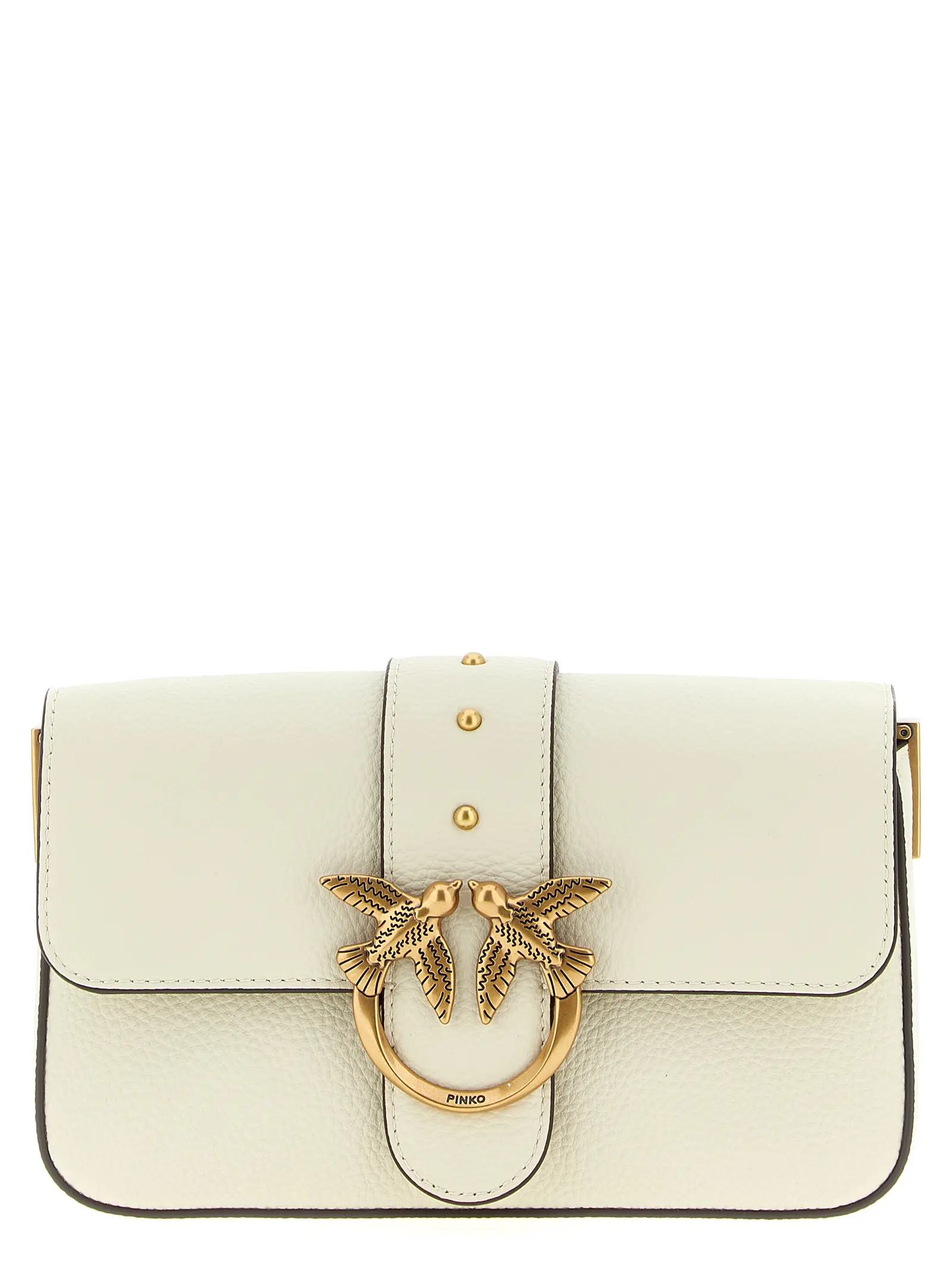 Міні сумка через плече з зернистої шкіри. Магнітна застібка на клапані. Металевий логотип Love Birds Diamond Cut спереду. Декорована металевими заклепками. Ремінець на плече регульований. Матеріал виготовлення 100% козина шкіра.