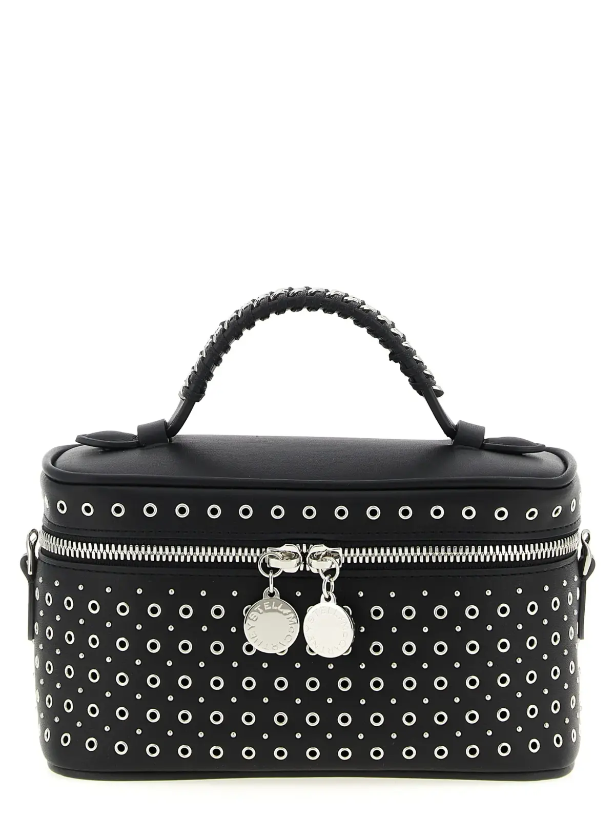 Ця сумка крос-боді Stella McCartney Vanity Falabella виконана з еко-шкіри високої якості, прикрашена стильними металевими заклепками, має зручну фіксовану ручку та знімний ланцюжковий ремінець. Втілює інноваційний підхід до етики моди, поєднуючи універсальність, елегантність і статусний вигляд для впевнених у собі жінок.