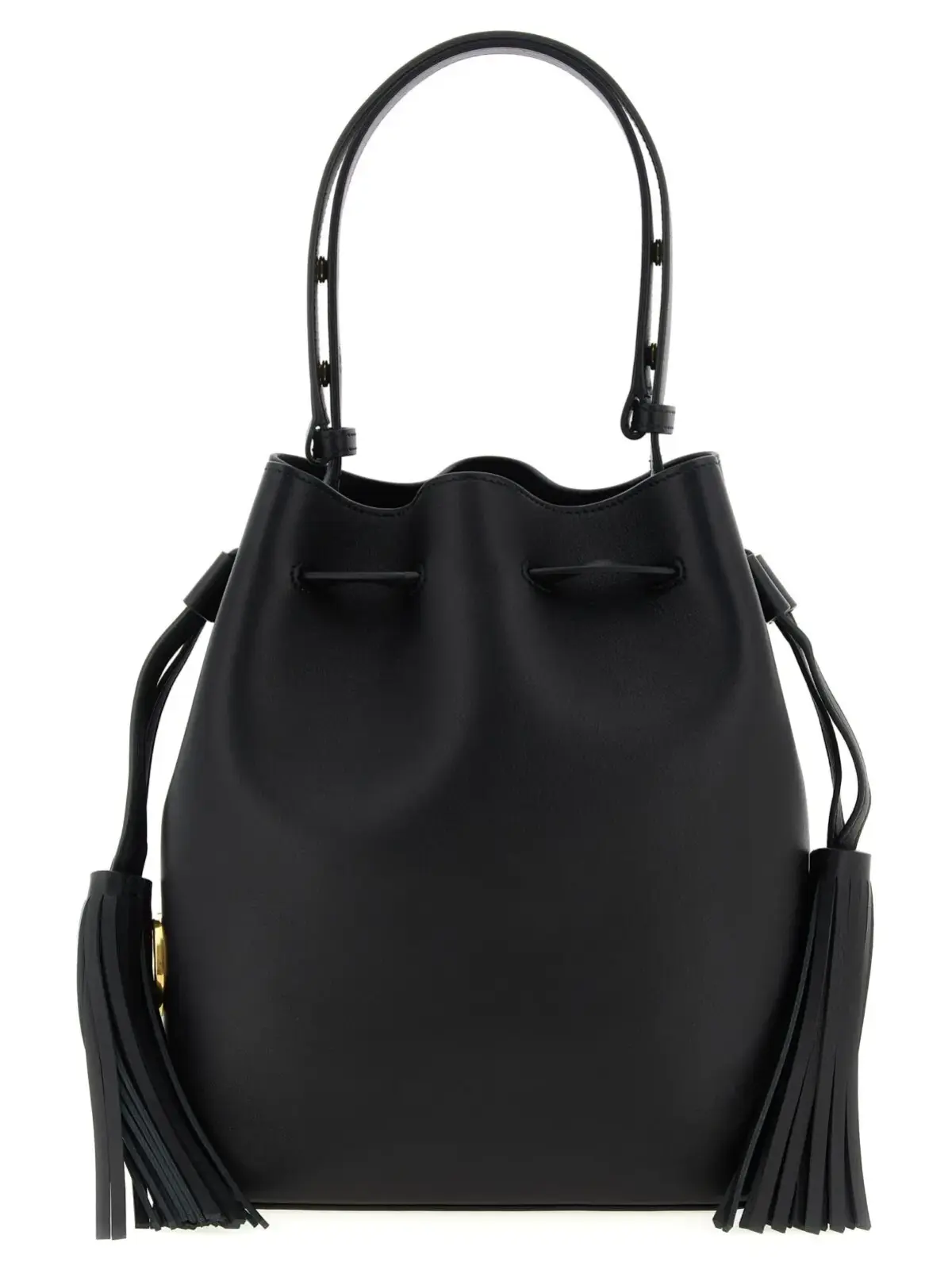 Елегантна жіноча сумка крос-боді з чорної телячої шкіри найвищої якості, оздоблена вишуканим металевим логотипом VLogo, має регульований ремінець та затяжну застібку з декоративними китицями. Вона поєднує в собі інноваційний дизайн, функціональність і бездоганний стиль, підкреслюючи статус та вишуканість власниці.
