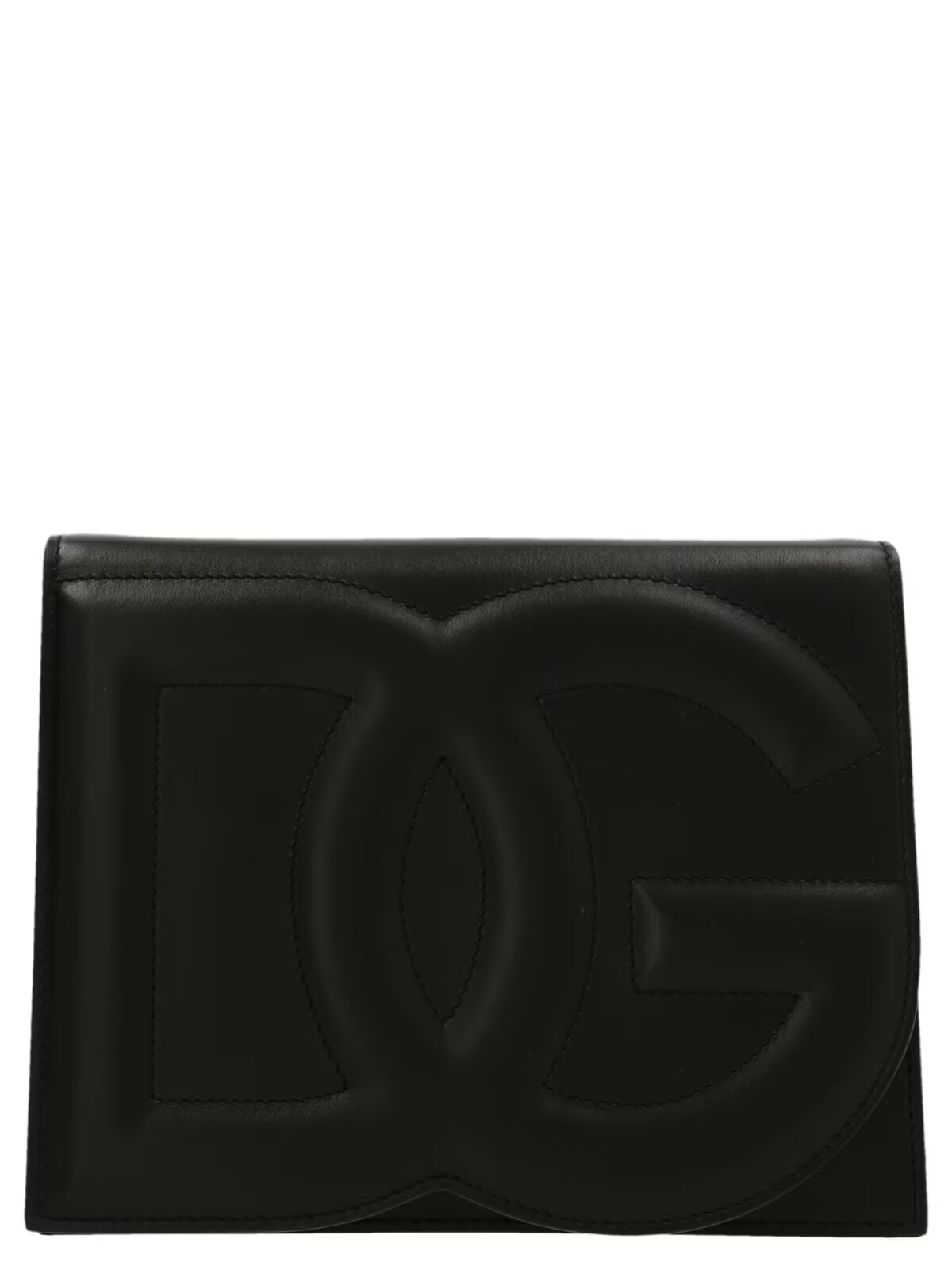 Жіноча сумка на плече від Dolce & Gabbana з вишитим логотипом DG з 3D ефектом. Виготовлена з чорної телячої шкіри, має регульований і знімний плечовий ремінець, клапан з прихованим магнітом, підкладку з алькантари, кишеню на блискавці та відділення з ремінцем і застібкою на кнопку. 100% шкіра теляча (бик).