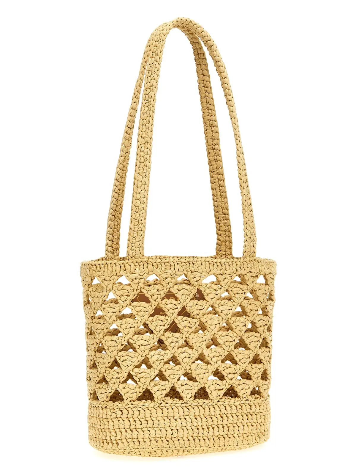 Вишукана жіноча сумка з ефектом рафії, виконана з 100% віскози, поєднує в собі витонченість плетіння та контрастну вишивку логотипу спереду. Двозахватна конструкція забезпечує комфорт і практичність, створюючи неперевершений образ статусу та стилю.
