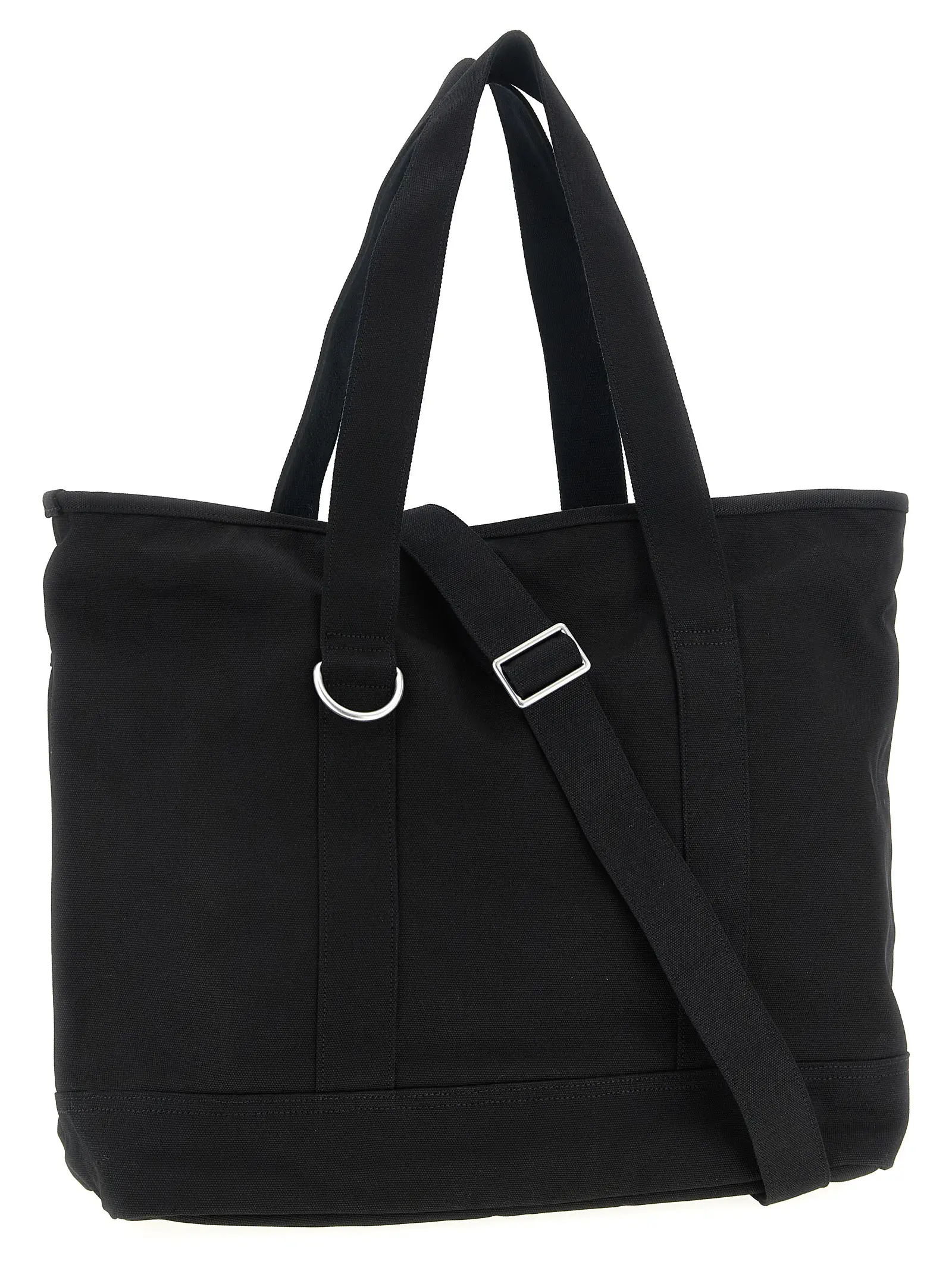 Чорна сумка шопер виготовлена з високоякісного поєднання бавовни та поліестеру, що забезпечує міцність і довговічність. Вишукана вишивка логотипу у тон підкреслює елегантність, а практичні передні кишені, подвійні ручки та регульований плечовий ремінь гарантують комфорт і функціональність. Закриття на блискавку додає безпеки, роблячи цю сумку ідеальним аксесуаром для сучасного стильного чоловіка, який цінує статус і універсальність.