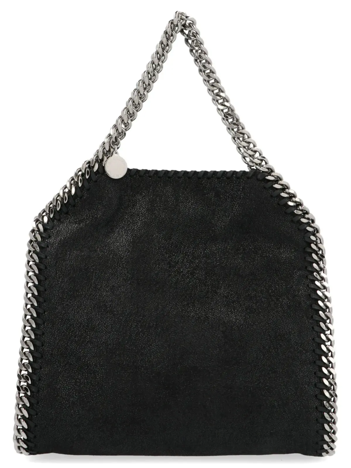 Чорна сумка Stella McCartney ‘Falabella’ mini handbag з eco Shaggy Deer шкіри з 3 срібними ланцюгами. JULIAN SUSTAINABLE – Ці продукти не містять шкіри та не тестуються на тваринах. 100% поліестер.