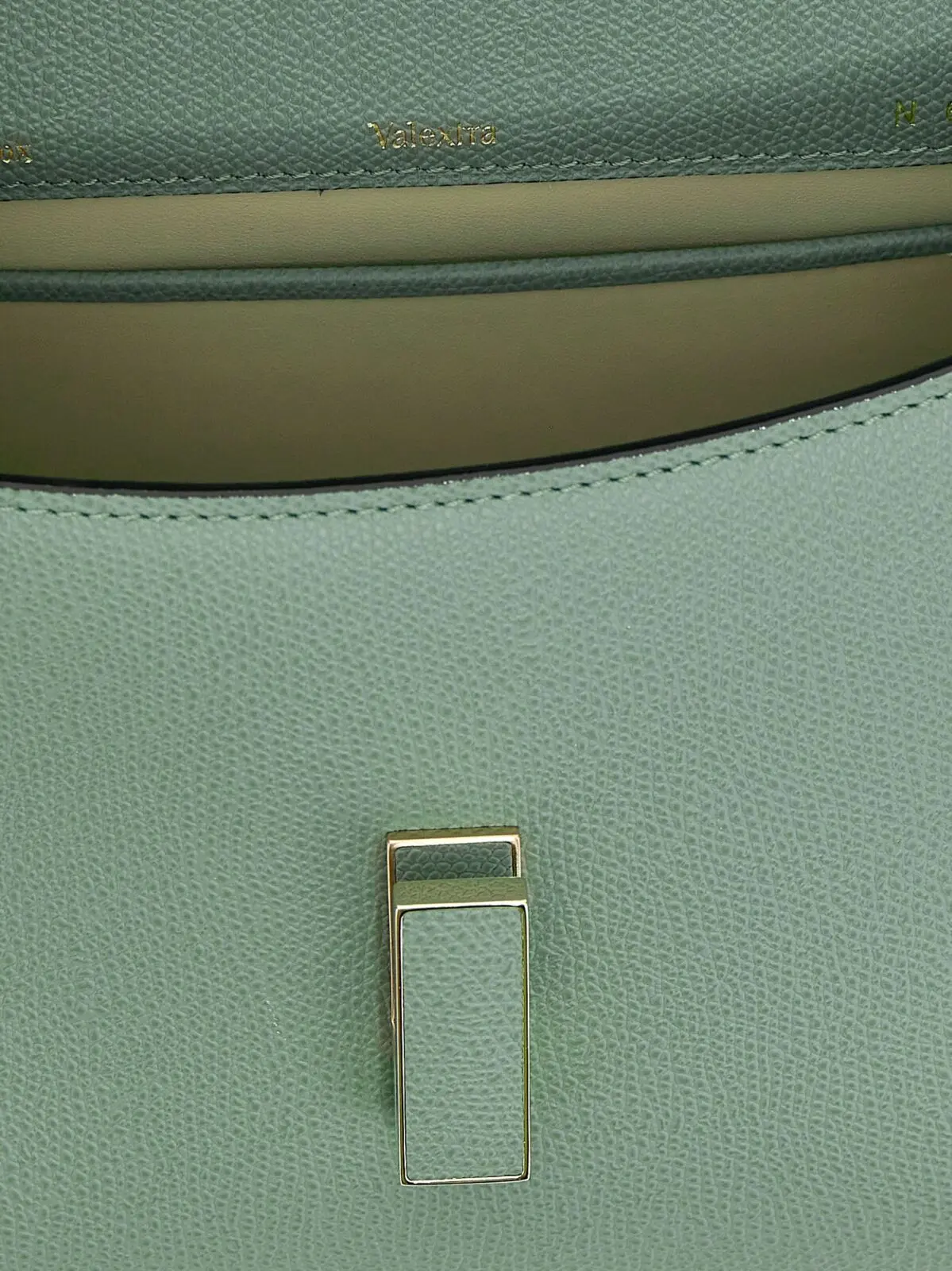 Сумка Valextra Iside small в елегантному зеленому відтінку виготовлена з високоякісної телячої шкіри Millepunte, що відзначається своєю стійкістю та розкішною текстурою. Її витончений дизайн доповнений контрастною обробкою Costa Valextra, фіксованою ручкою та елегантною застібкою на клапані, що надає їй сучасного вигляду. Металеві деталі підкреслюють преміум статус, а регульований та знімний плечовий ремінь забезпечує універсальність використання. Ця сумка стане ідеальним доповненням до будь-якого образу, підкреслюючи стиль та вишуканість власниці.