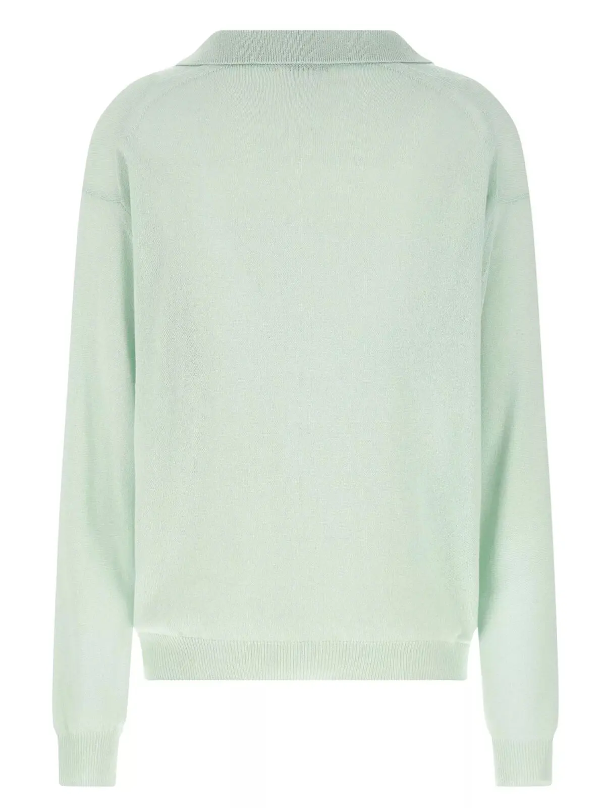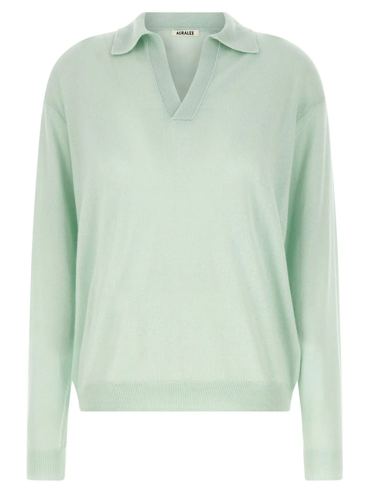 Вишуканий жіночий светр із суміші ніжного кашеміру та розкішного шовку, виконаний у глибокому зеленому відтінку. Елегантний V-подібний виріз, довгі рукави з манжетами та занижені плечі створюють неповторний стиль, який підкреслює статус і витонченість, поєднуючи комфорт і універсальність.