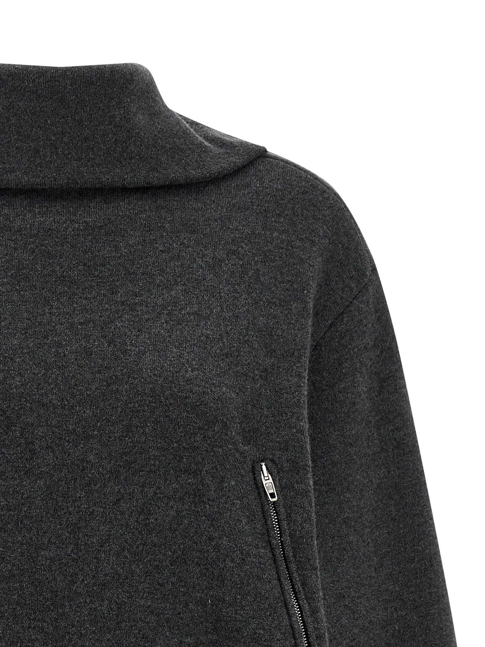 Елегантний сірий светр із 100% вовни відображає інноваційний підхід завдяки унікальній конструкції Back-to-Front, що поєднує комфорт і стиль. Щільна в’язка структура, високий комір із задньою напівблискавкою, практичні кишені та занижені плечі підкреслюють статусність і універсальність цього вишуканого виробу.