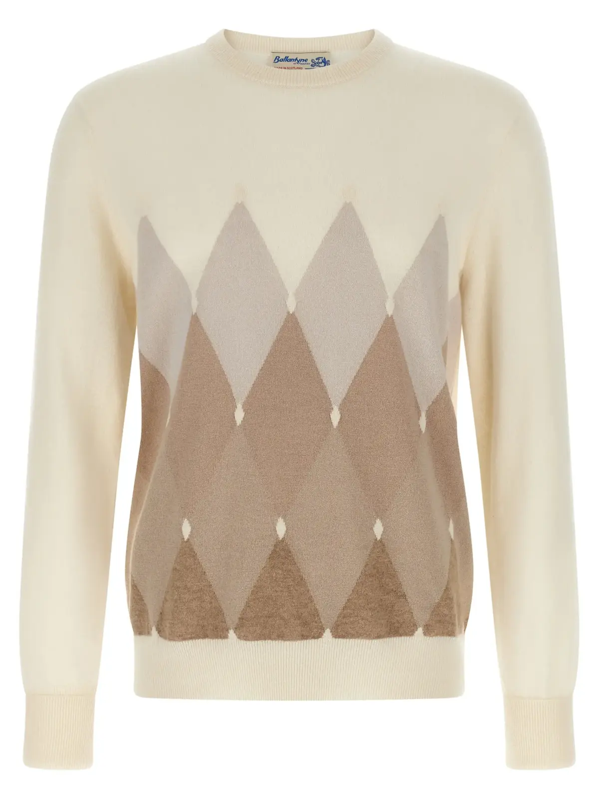 Вишуканий чоловічий светр Ballantyne кольору беж, виконаний з 100% кашеміру, поєднує в собі неперевершену м’якість і теплоту з класичним візерунком аргайл. Елегантний дизайн із круглим вирізом та довгими манжетами підкреслює статус і бездоганний стиль, роблячи цей светр універсальним вибором для будь-яких урочистих та повсякденних образів.
