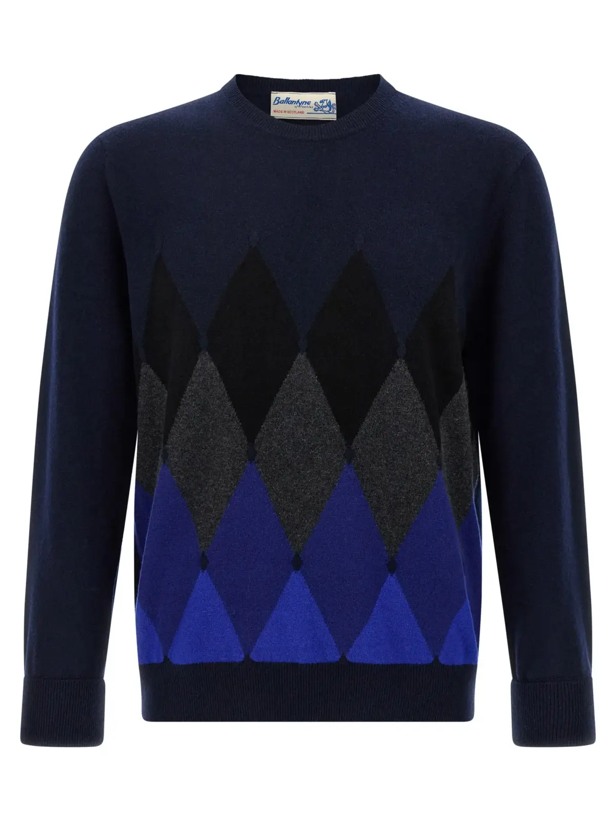 Вишуканий чоловічий светр з 100% кашеміру насиченого синього відтінку з переднім жакардовим візерунком Аргайл, круглим вирізом та довгими манжетами, поєднує неперевершену м’якість, інноваційний дизайн і універсальність, підкреслюючи статус та витончений стиль власника.