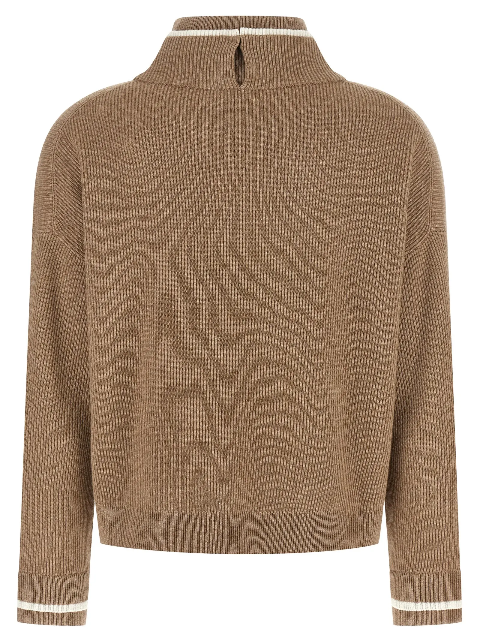 Цей жіночий світшот Brunello Cucinelli виконаний з розкішного поєднання вовни, кашеміру та шовку, що забезпечує неперевершену м’якість і тепло. Подвійний шар, високий комір із вишуканою деталлю Monile, подовжені рукави з подвійними манжетами та занижені плечі створюють гармонійний баланс між інноваційним дизайном і класичною елегантністю, підкреслюючи статус і бездоганний стиль власниці.