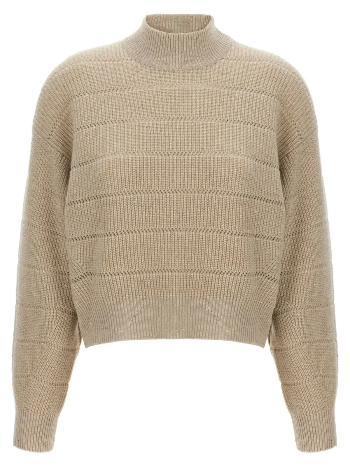 Светр Brunello Cucinelli Rustic Dazzling Net cropped Бежевий