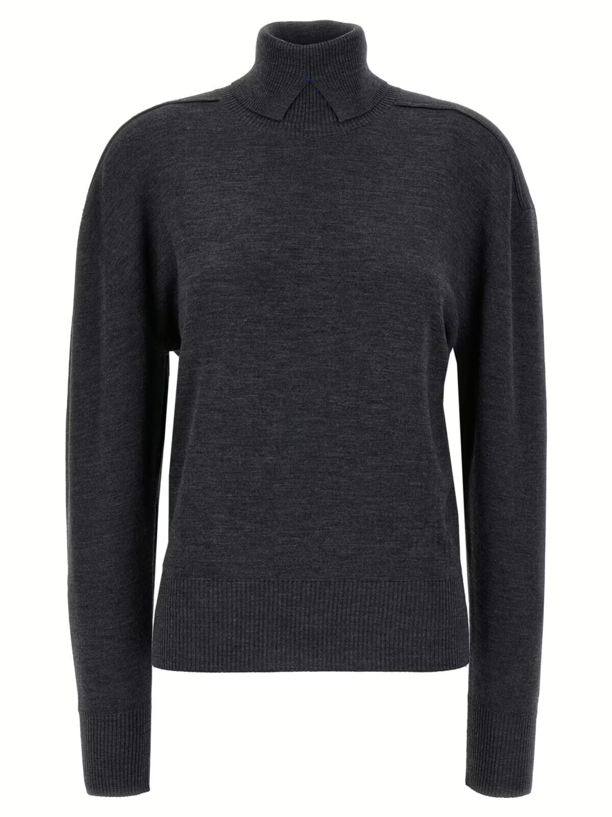 Сірий жіночий светр Burberry з високим коміром — це втілення елегантності та бездоганного стилю, створене з 100% вовни, що забезпечує неймовірну м’якість і тепло. Інноваційний дизайн з довгими рукавами з манжетами підкреслює жіночність, водночас даруючи відчуття комфорту та затишку. Цей светр ідеально підходить для створення як повсякденних, так і вечірніх образів, завдяки своїй універсальності, що дозволяє поєднувати його з різними елементами гардеробу. Виконаний з високоякісних матеріалів, він демонструє вишуканий смак та статус свого власника, підкреслюючи його унікальність у світі моди. Burberry дотримується екологічних стандартів, тому ви можете насолоджуватись цим виробом, знаючи, що ваша покупка є відповідальною та свідомою. Цей светр стане справжнім акцентом у вашому гардеробі, надаючи кожному образу нотку розкоші та стилю.