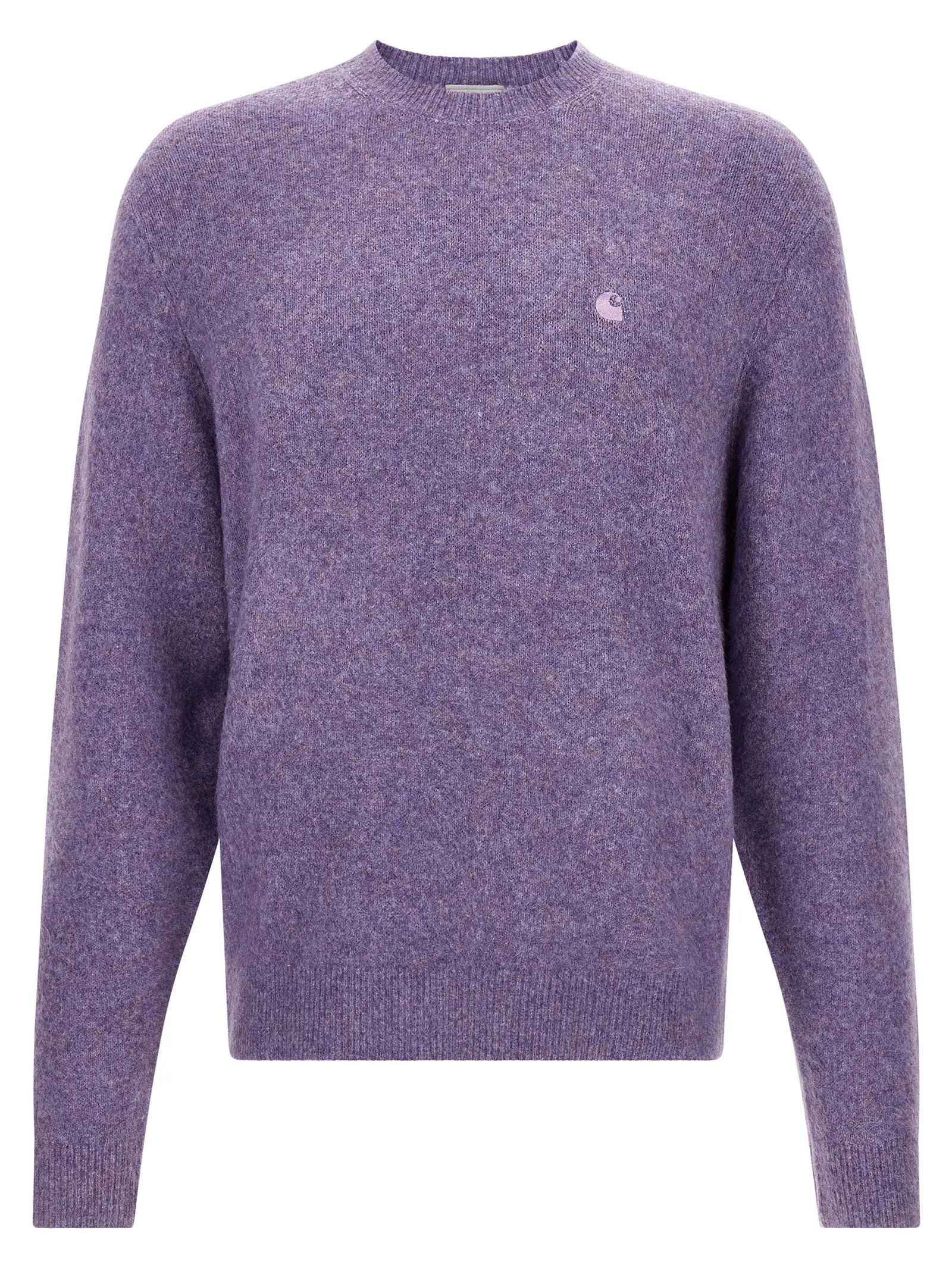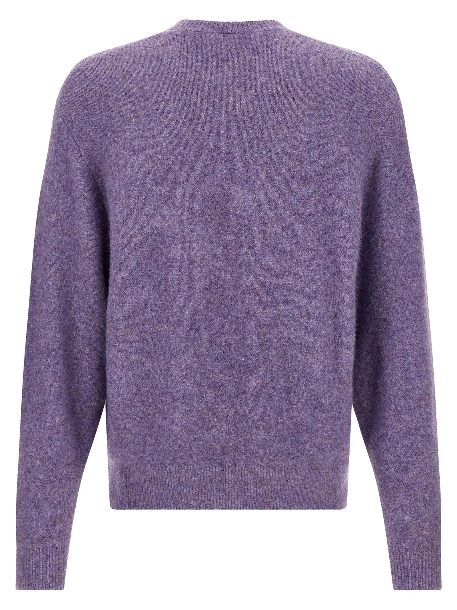 Елегантний чоловічий светр фіолетового відтінку, виготовлений з інноваційної суміші волокон із переробленого поліестеру, ацетату, нейлону, вовни та еластану, що забезпечує комфорт і довговічність. Вишуканий дизайн із тонко вишитим логотипом, класичним круглим вирізом та заниженими плечима підкреслює стиль і статус, роблячи цей светр універсальним вибором для сучасного гардеробу.