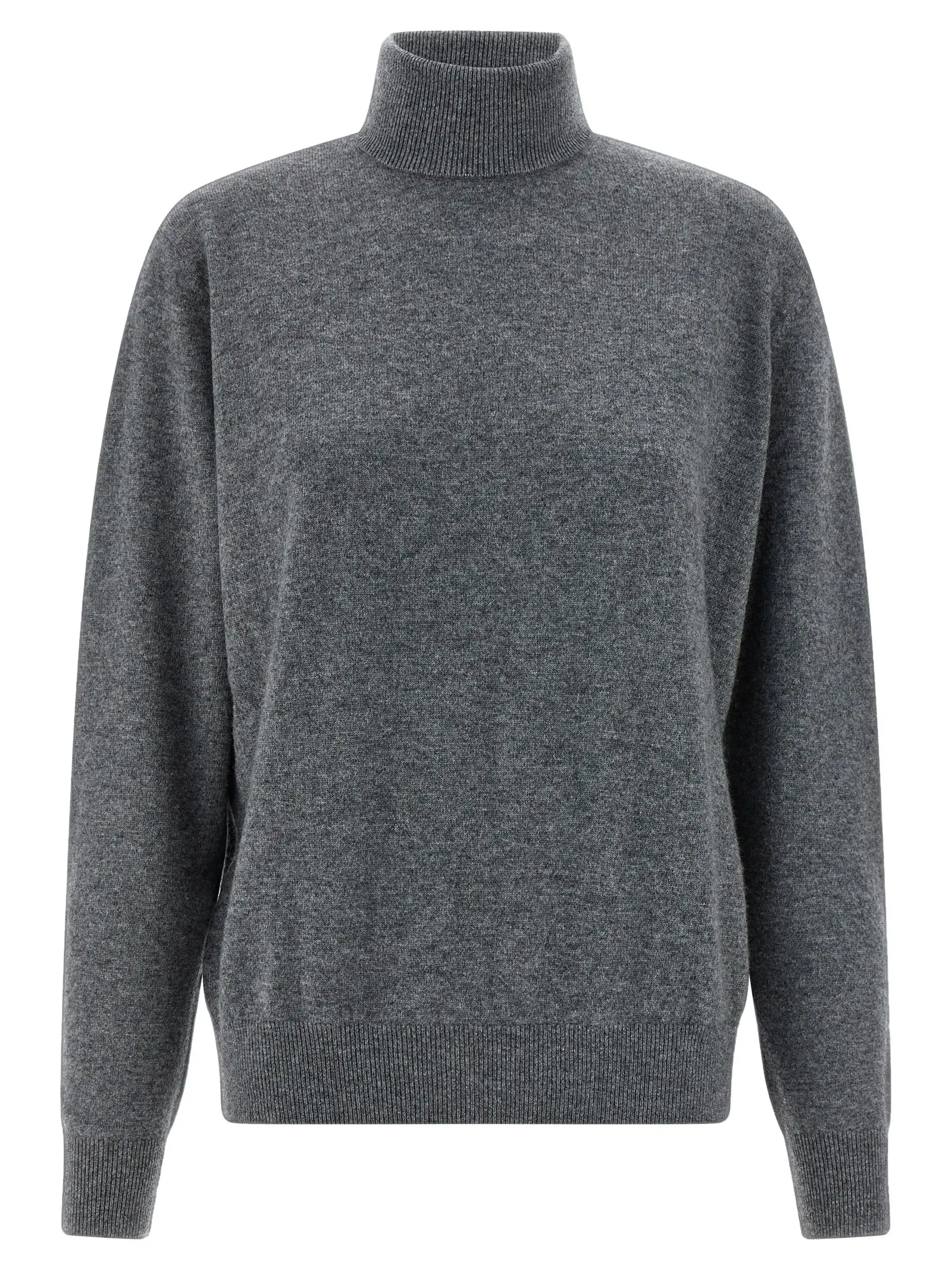 Жіночий светр з високим відкладним коміром, виконаний із екстра фіної мериносової вовни та кашеміру, поєднує в собі розкішну м’якість і тепло, забезпечуючи неперевершений комфорт. Вишуканий сірий відтінок, довгі рукави з манжетами та занижені плечі підкреслюють сучасний стиль і елегантність, роблячи цей виріб ідеальним вибором для тих, хто цінує преміальну якість і універсальність у повсякденному гардеробі.