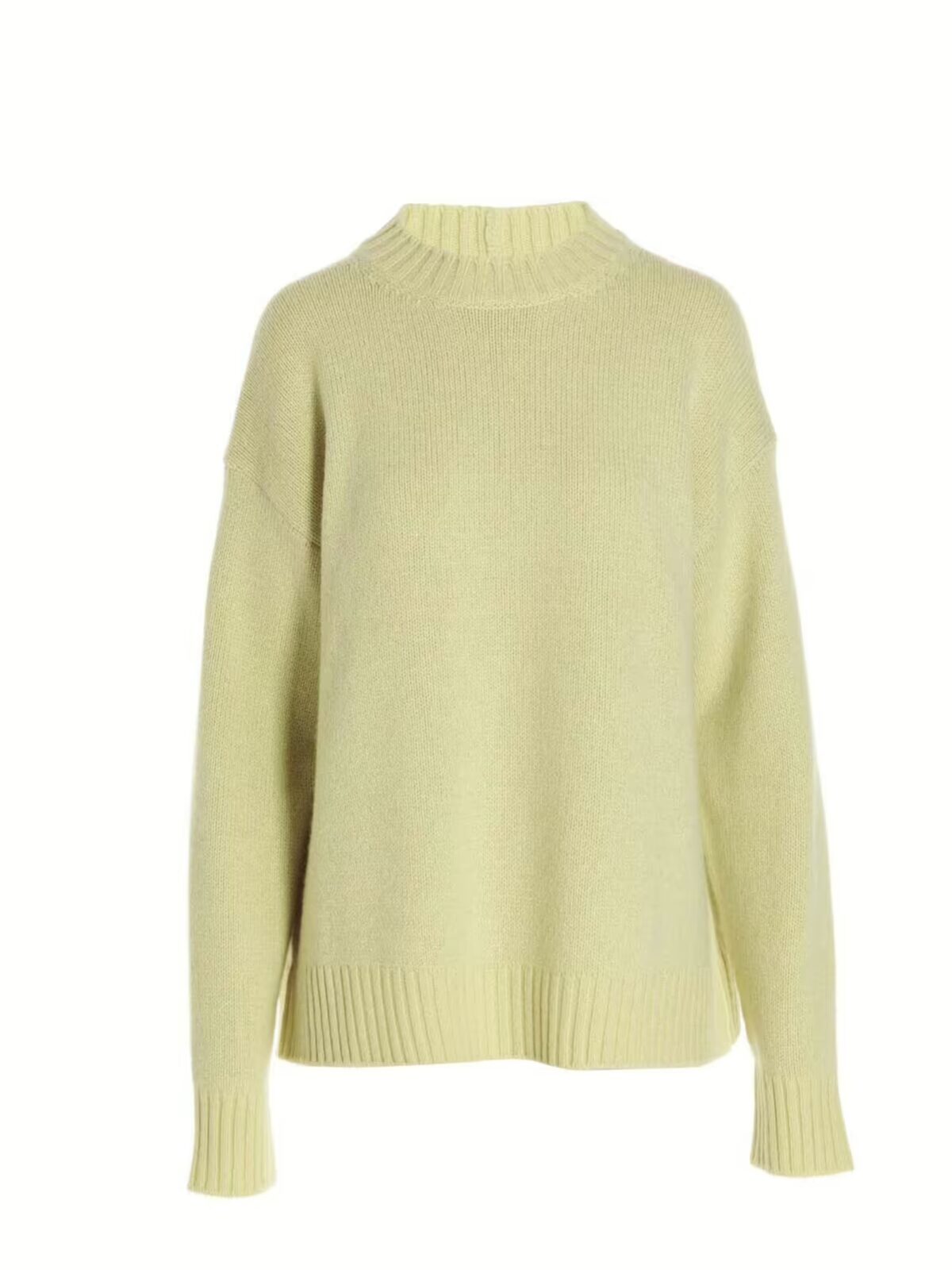 Стильний светр Crewneck Jil Sander у жовтому кольорі з довгими рукавами. Виготовлений з 88% кашеміру, 10% бавовни та 2% поліаміду.