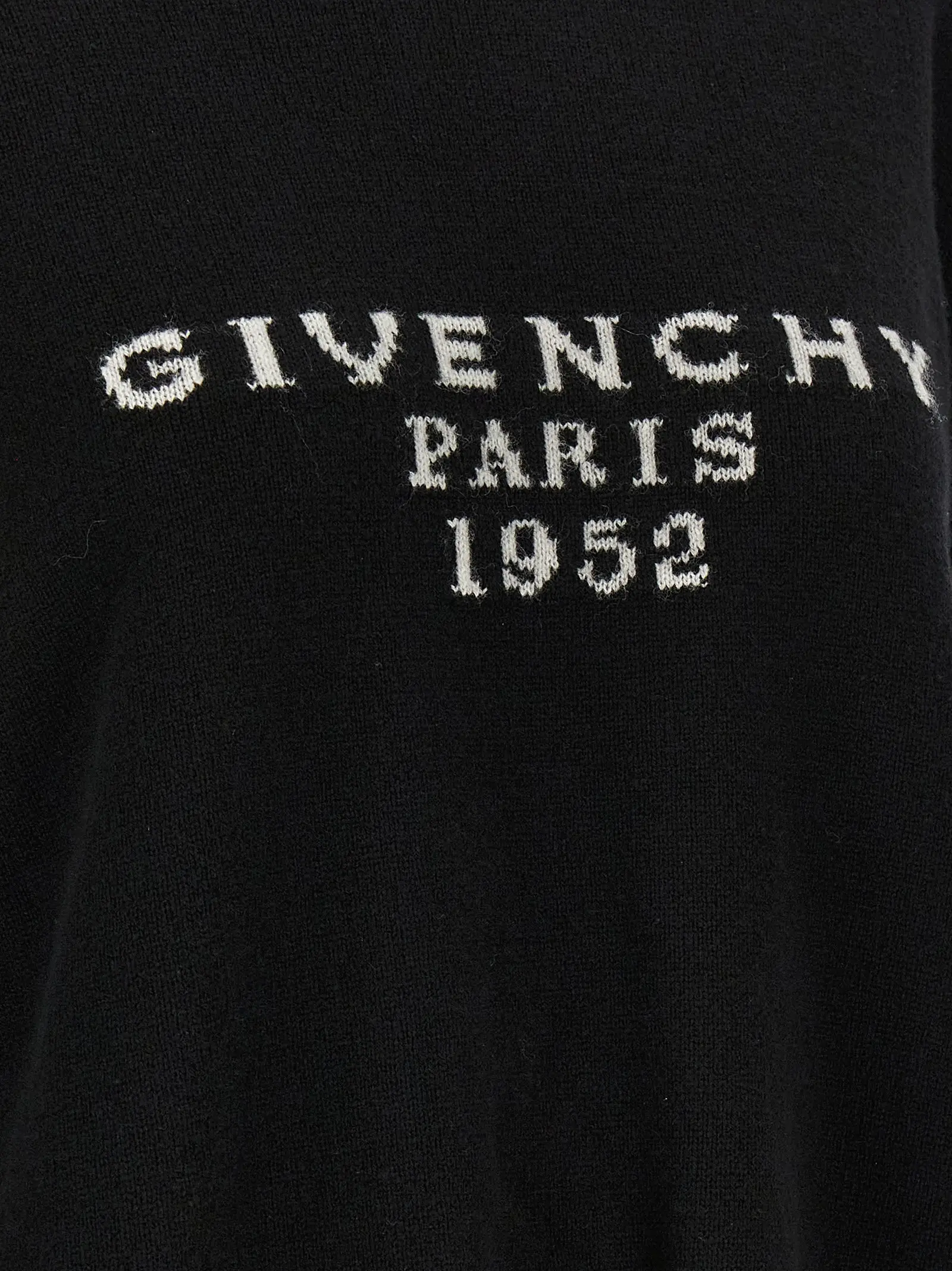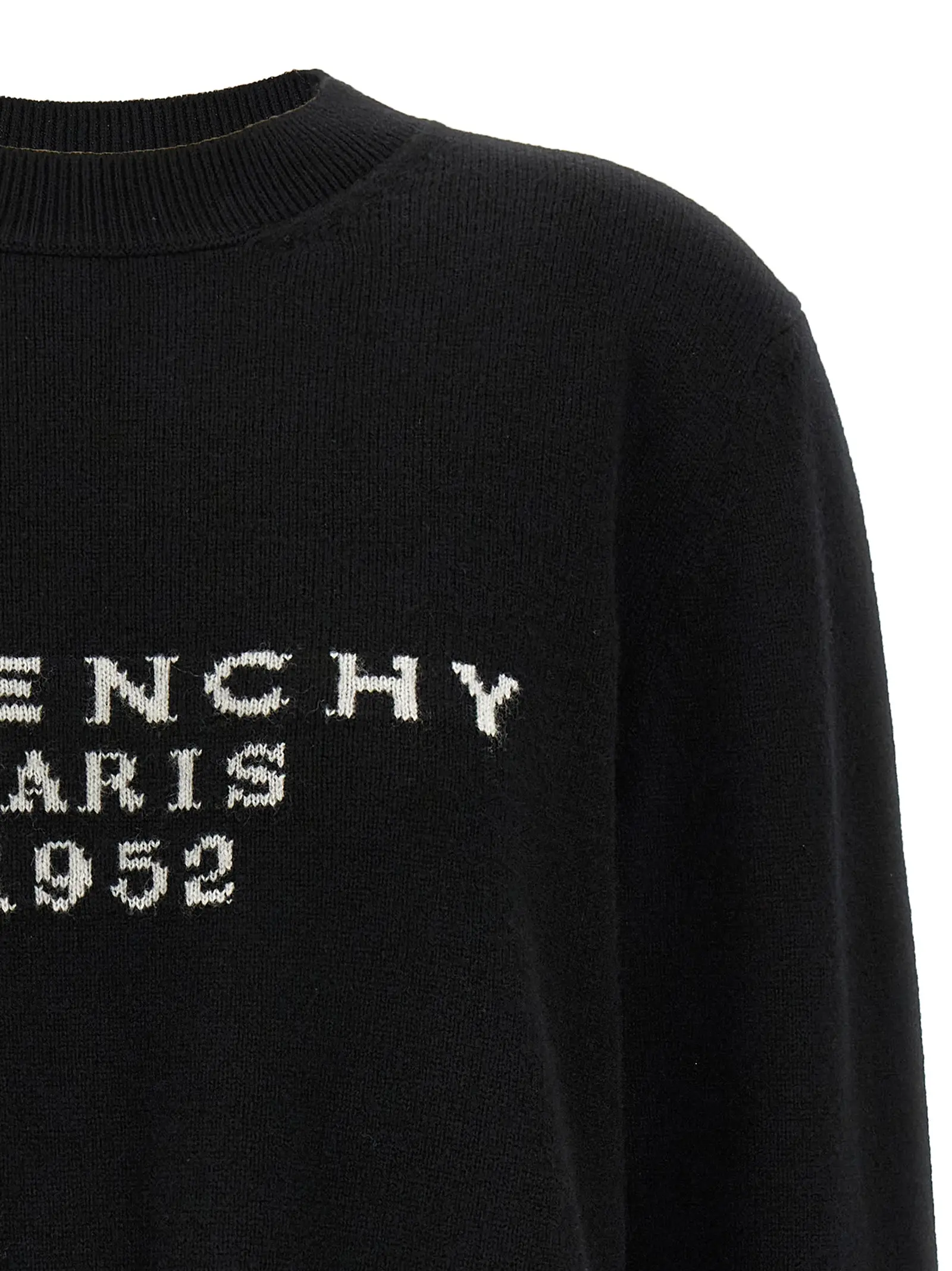 Жіночий світшот з вовни та кашеміру. Передній жакардовий принт GIVENCHY Paris 1952. Круглий виріз горловини. Довгі рукави з манжетами. Трохи опущена лінія плечей. Склад матеріалу 70% вовна, 30% кашемір.