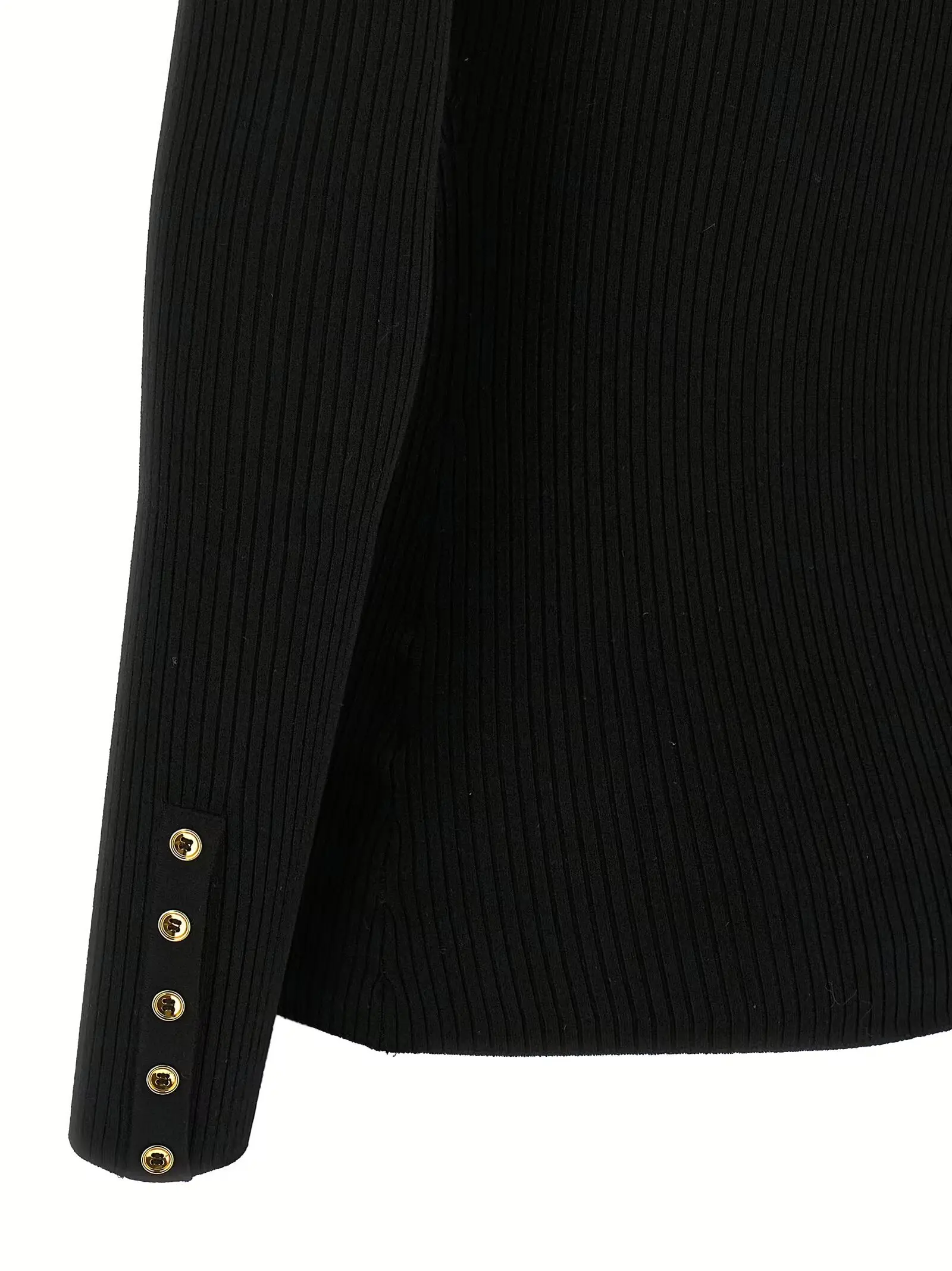Витончений чорний светр гольф із рубчиком, виготовлений із розкішної суміші шовку, льону та поліаміду, поєднує елегантність і комфорт. Вишуканий дизайн з атласною кишенею-ілюзією та металевою деталлю логотипу підкреслює статус і стиль, а висока горловина й довгі рукави забезпечують універсальність і функціональність.