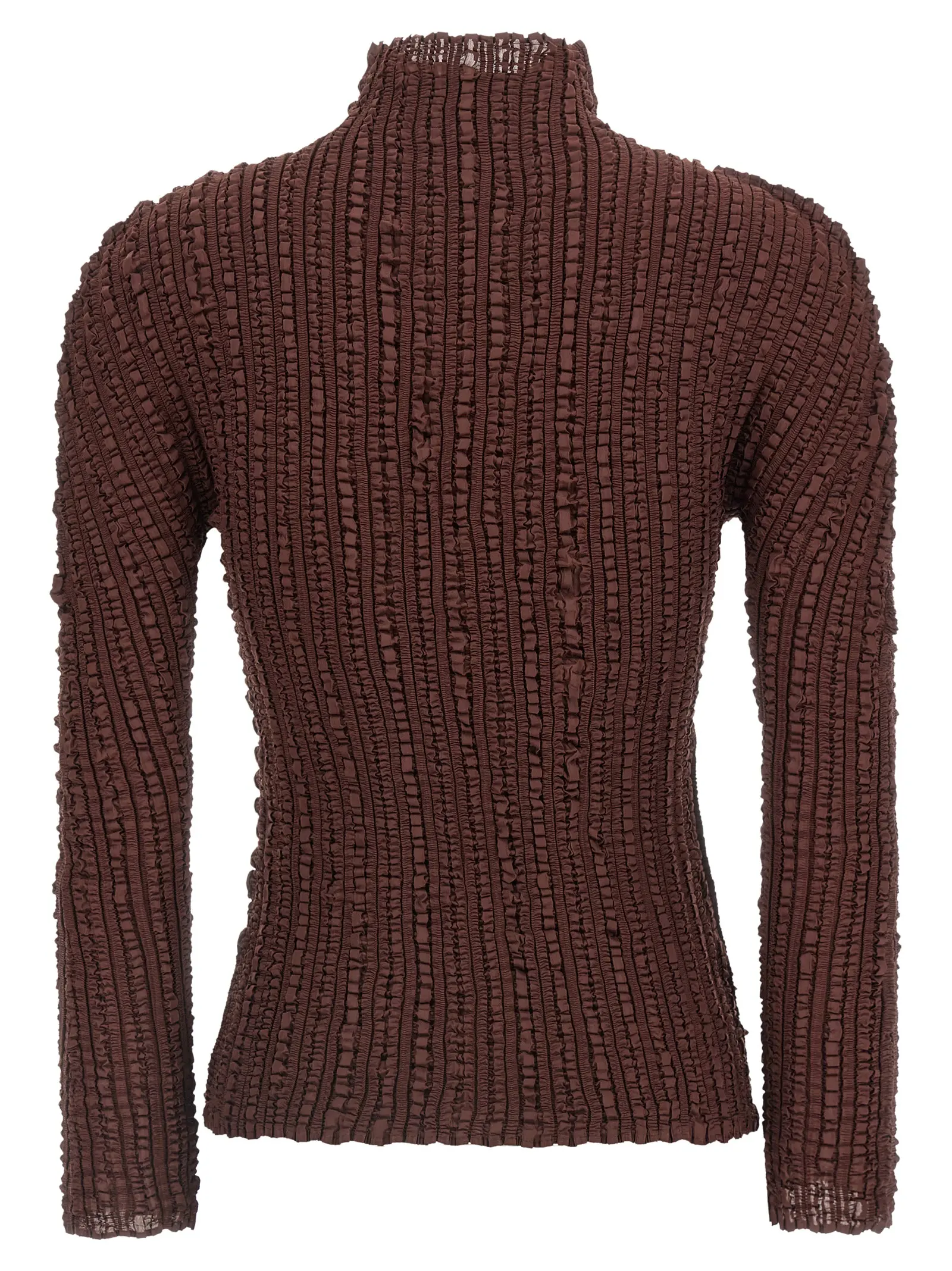 Вишуканий светр Jellyfish Pleats від Issey Miyake виконаний з інноваційної плісированої тканини 100% поліестер, що поєднує легкість і довговічність. Елегантний коричневий відтінок, високий комір і довгі рукави створюють образ неперевершеного стилю й статусу, підкреслюючи універсальність та сучасність вашого гардеробу.