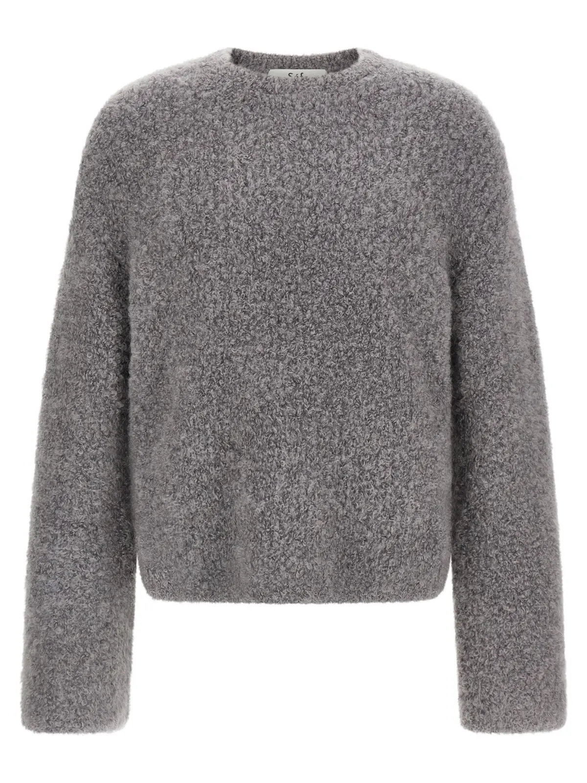 Светр виконаний з букле мохерної суміші пряжі. Має човниковий виріз горловини. Рукави довгі з опущеними плечима. Склад тканини 68% вовна, 17% шерсть, 13% нейлон, 2% еластан.