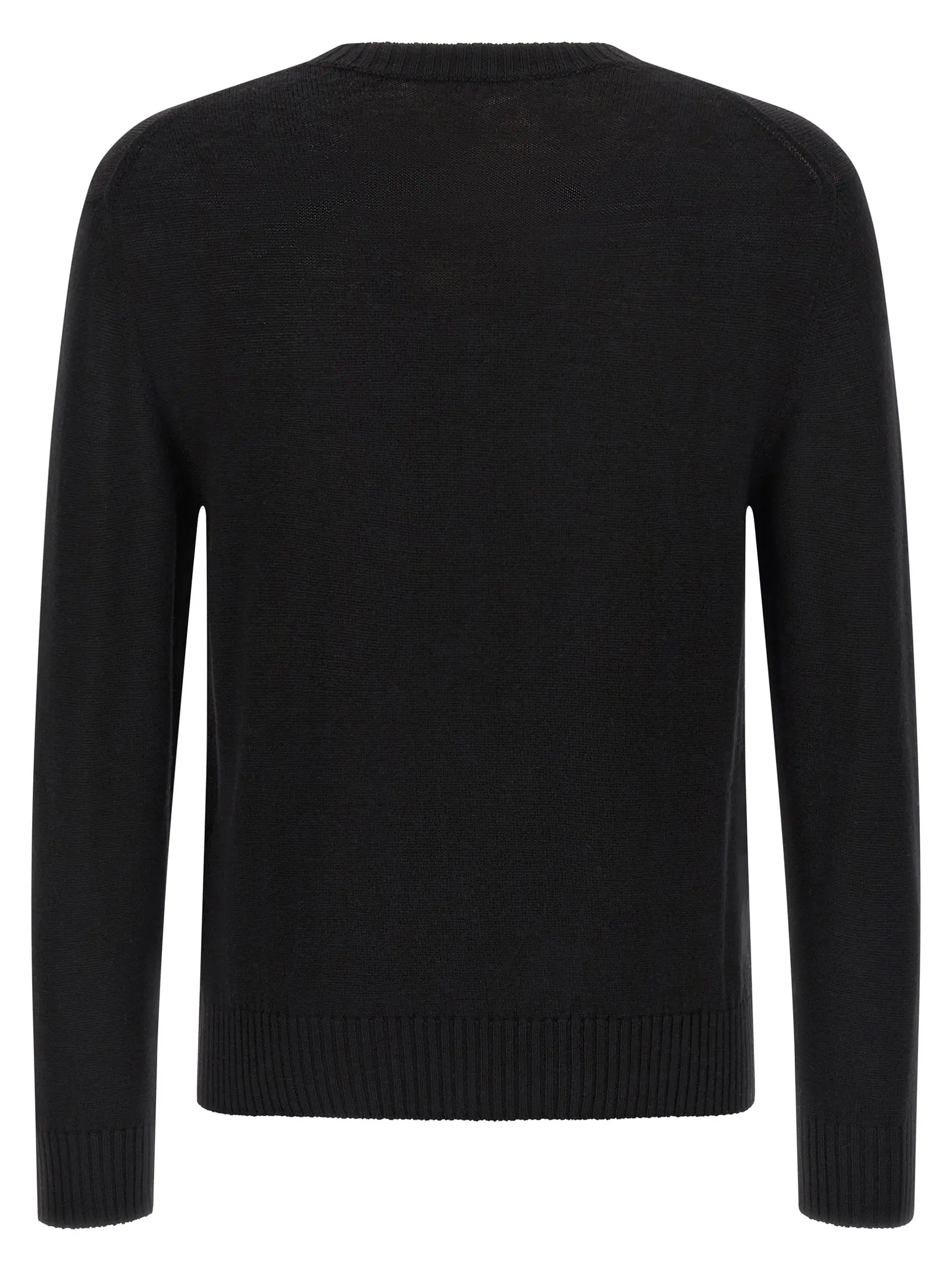 Спущена лінія плеча формує вільний об’єм, що м’яко структурує в’язану фактуру з вовни першого стрига. Однотонна вишивка спереду виступає делікатним рельєфним штрихом, позбавленим зайвого контрасту. Круглий виріз та еластичні манжети довгих рукавів фіксують лаконічну конструкцію, де природна щільність полотна та стриманість крою стають головними акцентами.