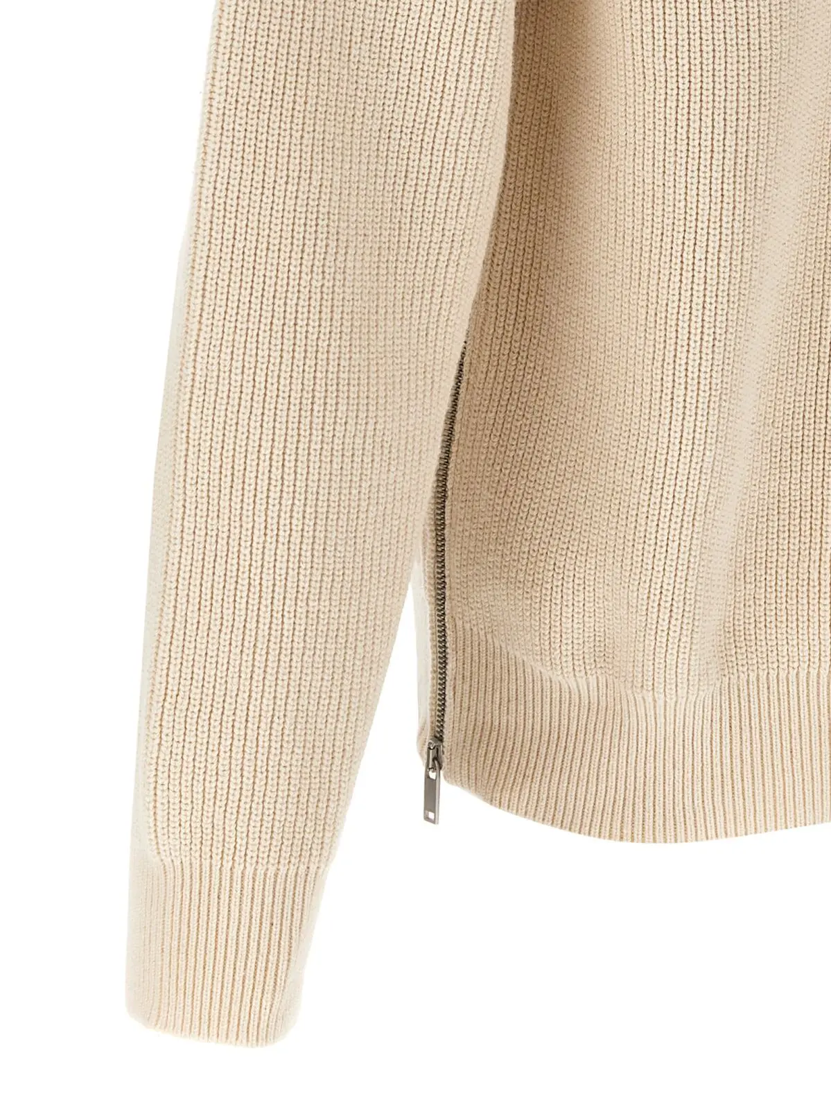 Бежевий чоловічий светр виконаний з високоякісної бавовни, що забезпечує неймовірний комфорт та досконалу посадку. Класичний круглий виріз доповнений рукавами з манжетами, а бічні застібки на блискавці надають сучасного вигляду. Цей светр ідеально поєднує елегантність та функціональність, що робить його універсальним вибором для будь-якої нагоди. Інноваційний дизайн підкреслює статус власника, надаючи образу стильності та вишуканості. Продукт виготовлений з екологічно чистих матеріалів, що свідчить про відповідальне ставлення до навколишнього середовища.