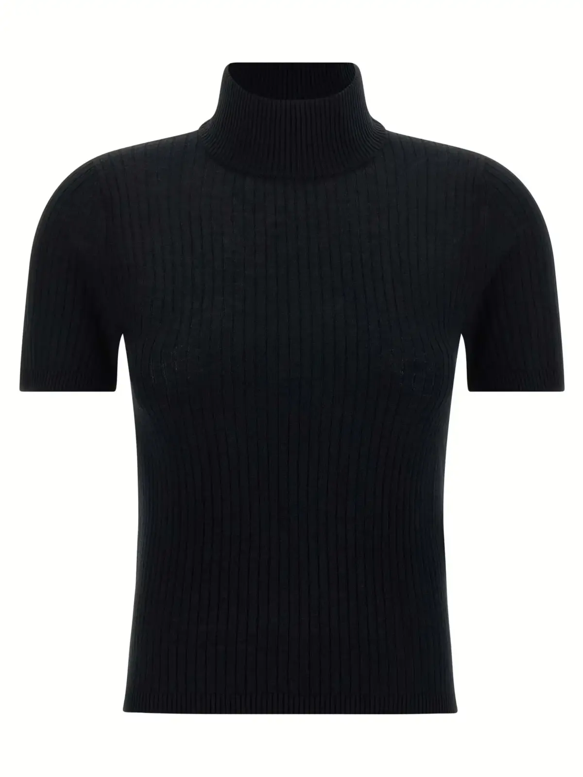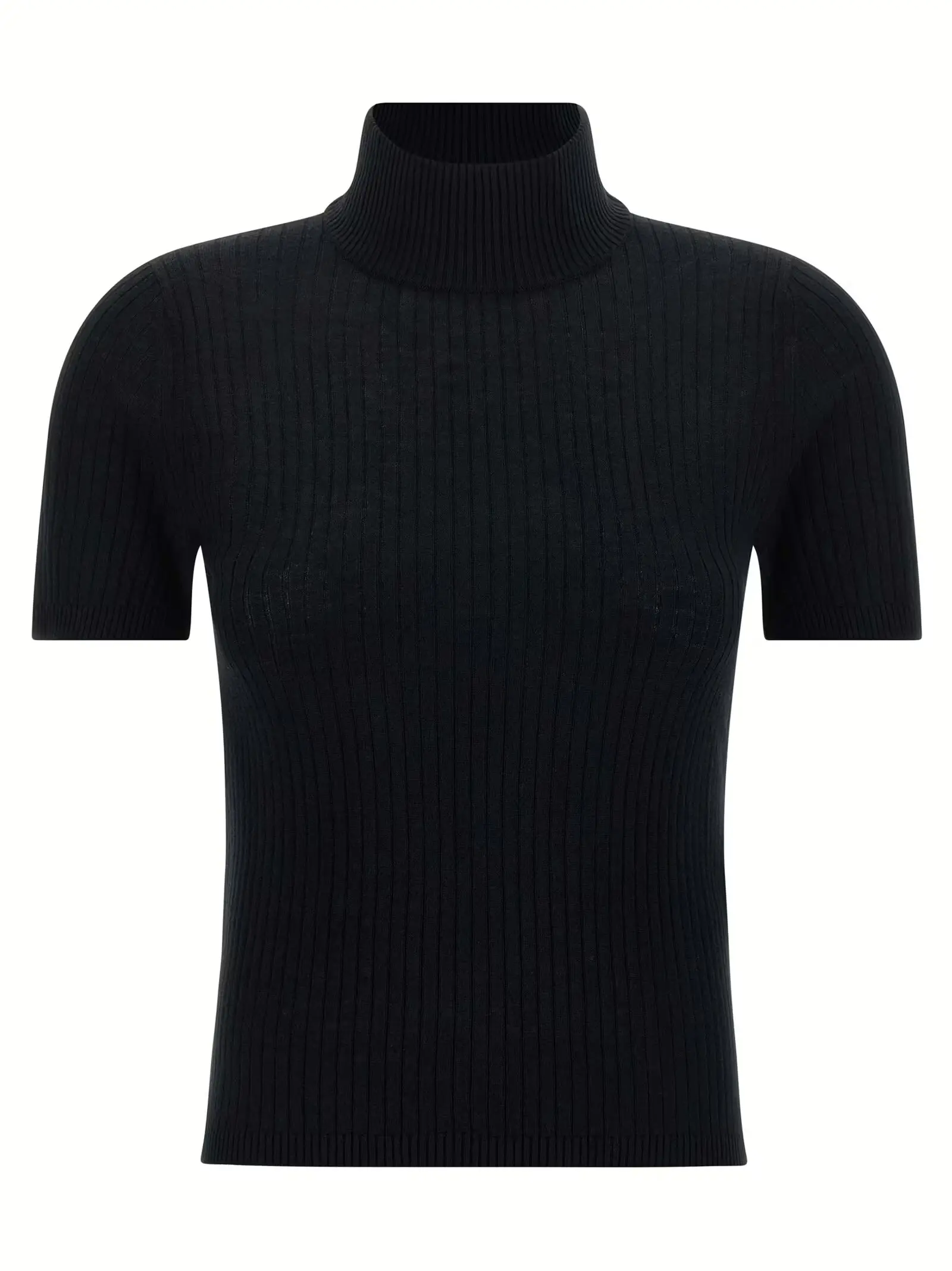 Вишуканий жіночий світшот із високим коміром та короткими рукавами, виконаний із преміального поєднання шовку та вовни, що забезпечує неперевершену м’якість і комфорт. Стриманий чорний колір і текстурована фактура підкреслюють елегантність і сучасний стиль, роблячи цю річ ідеальним вибором для впевнених у собі та стильних жінок.