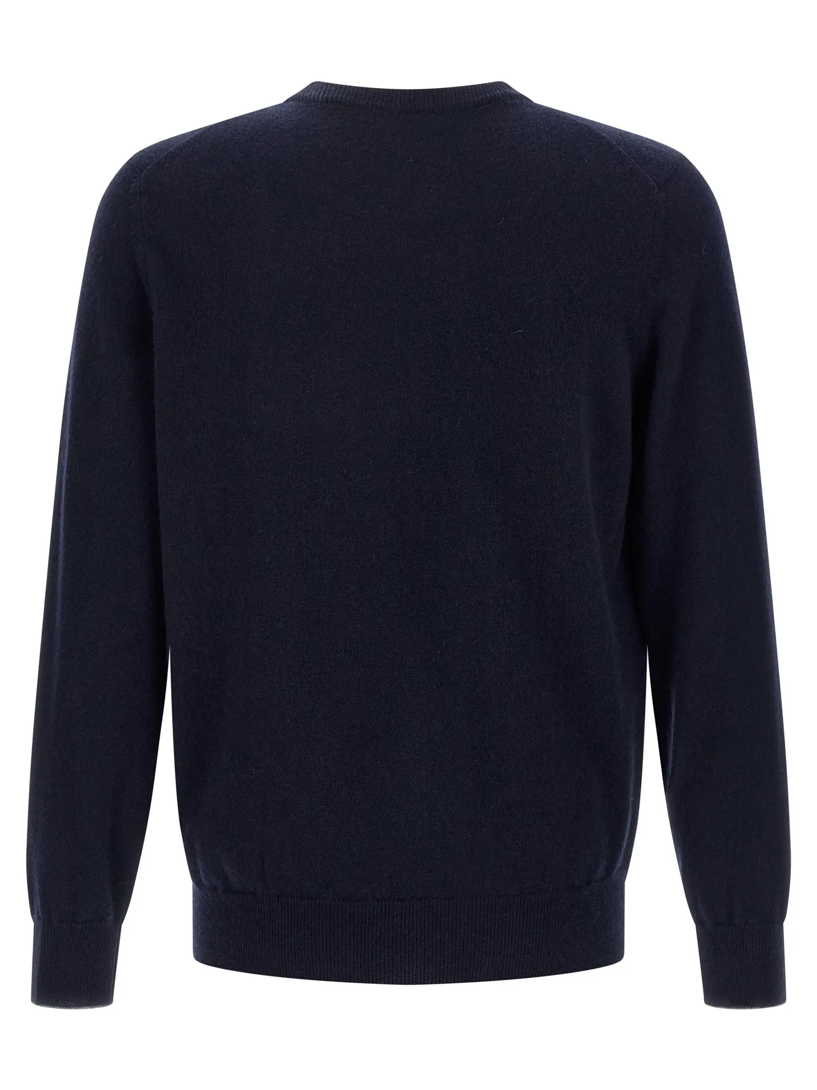 Вишуканий чоловічий светр із 100% кашеміру насиченого синього відтінку, що поєднує неперевершену м’якість та легкість з елегантним дизайном, контрастними деталями та класичною круглою горловиною, підкреслюючи вишуканий стиль і статус власника.