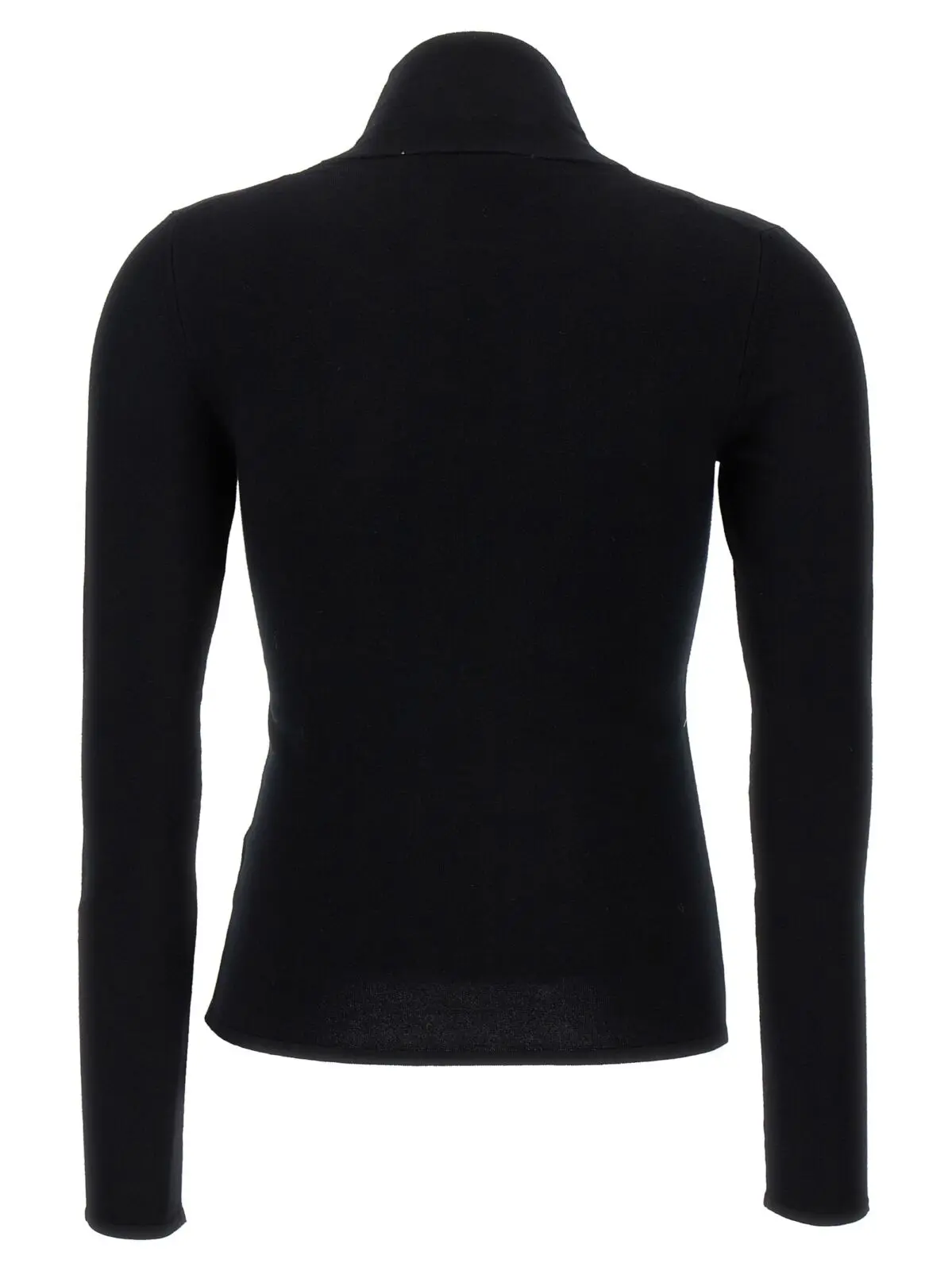 Відчуйте неперевершений комфорт та стиль зі светром від 1017-Alyx-9Sm. Цей чорний светр, створений з віскозної суміші, прикрашений вплетеним логотипом спереду, що додає ексклюзивності та розкішного вигляду. Високий горловий виріз та довгі рукави забезпечують затишок та тепло в холодні дні. Склад тканини включає 89% віскози, 8% поліаміду та 3% еластану, що забезпечує ідеальне поєднання м’якості, еластичності та довговічності. Оберіть цей светр для створення бездоганного образу, який підкреслить вашу індивідуальність та вишуканий смак.