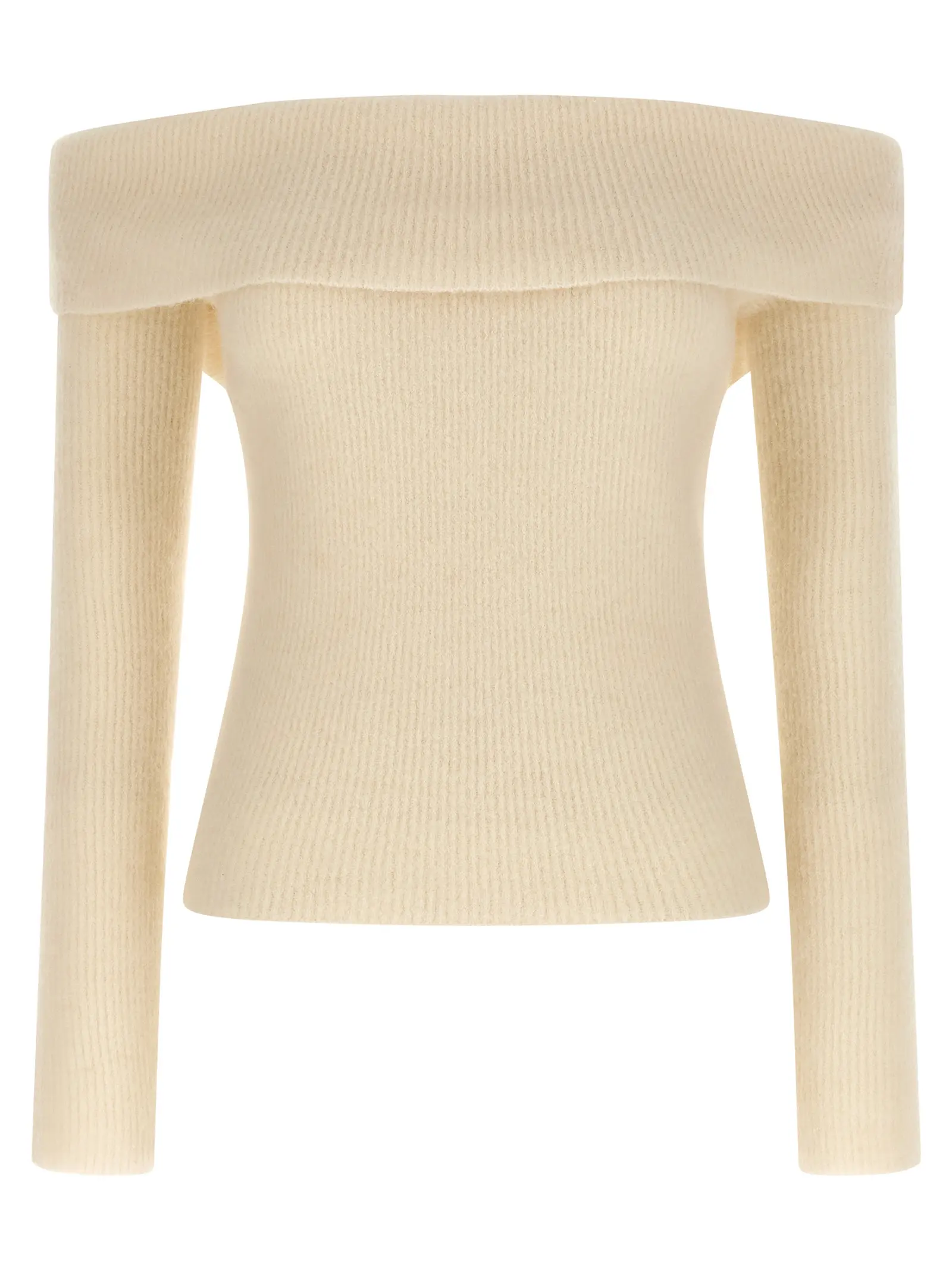 В’язаний светр з вовни. Вільний крій з відкритими плечима. Відворот у верхній частині. Довгі рукави. Склад 100% вовна.