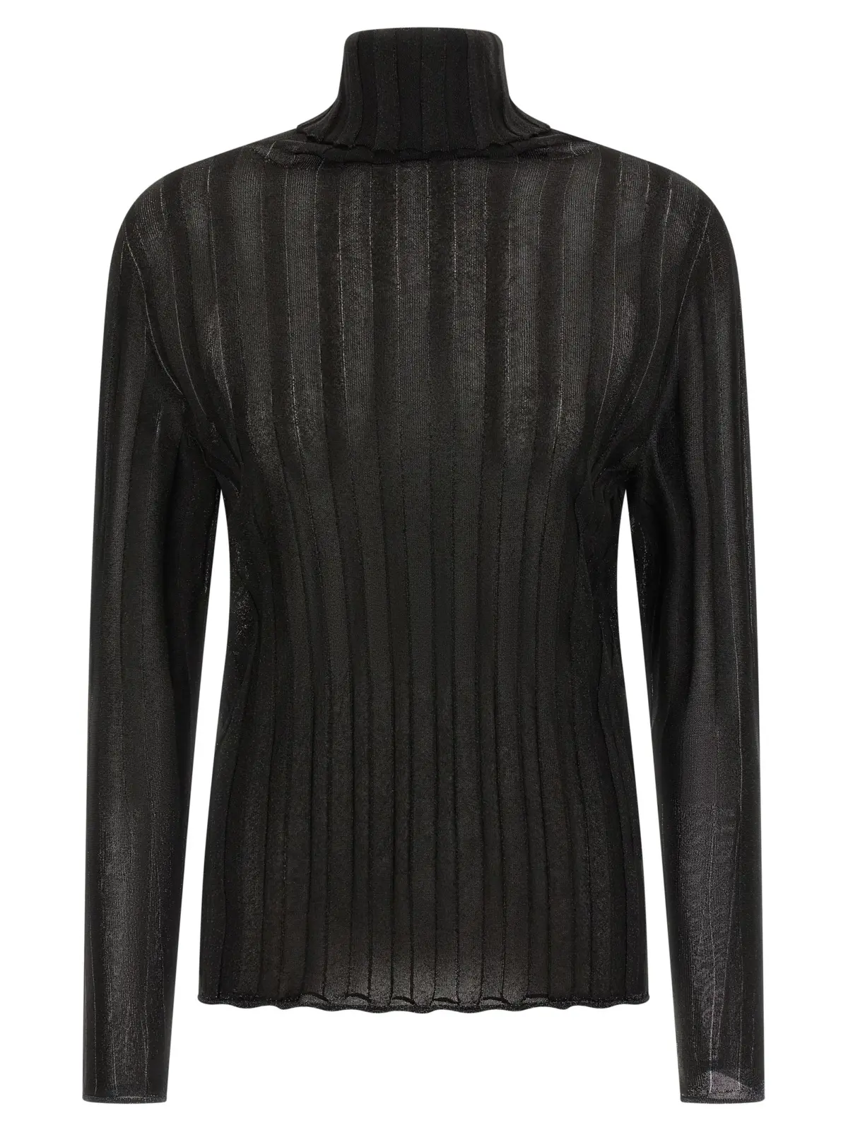 Розкішний жіночий светр Lurex з колекції Fabiana Filippi виконаний з високоякісної віскози з додаванням поліестеру, що забезпечує еластичність і комфорт. Вишукана рельєфна фактура, відкладний комір і контрастна окантовка підкреслюють неповторний стиль, поєднуючи інноваційність з універсальністю для створення вишуканого образу преміум-класу.