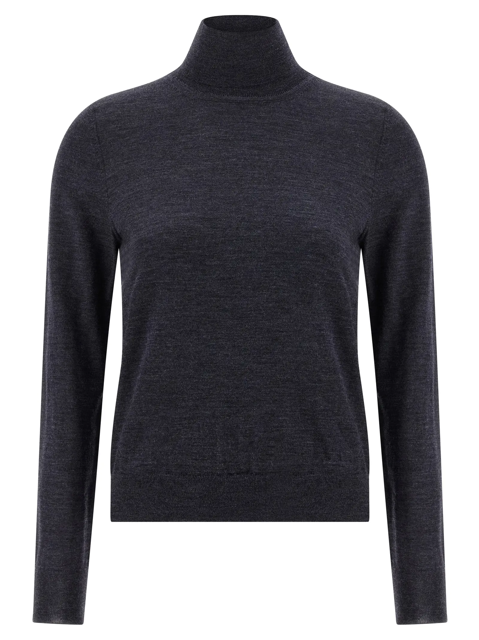 Вишуканий жіночий светр з тонкої вовни в елегантному синьому відтінку, з високо піднятим коміром-водолазкою та довгими рукавами з манжетами. Виріб відзначається бездоганною якістю матеріалів, інноваційним дизайном і неперевершеною універсальністю, що підкреслює статус і стиль власниці.