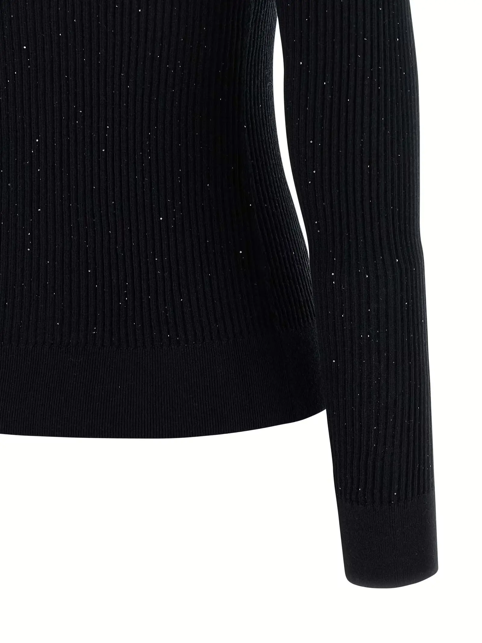 Вишуканий жіночий светр Marabu, виконаний з унікальної суміші шовку та вовни, поєднує ніжність і тепло з вишуканим дизайном. Ребристий в’язаний матеріал з мікросеквінками додає неповторного блиску, а класичний круглий виріз та довгі рукави підкреслюють елегантність і універсальність цього преміального виробу, створеного для статусних образів.