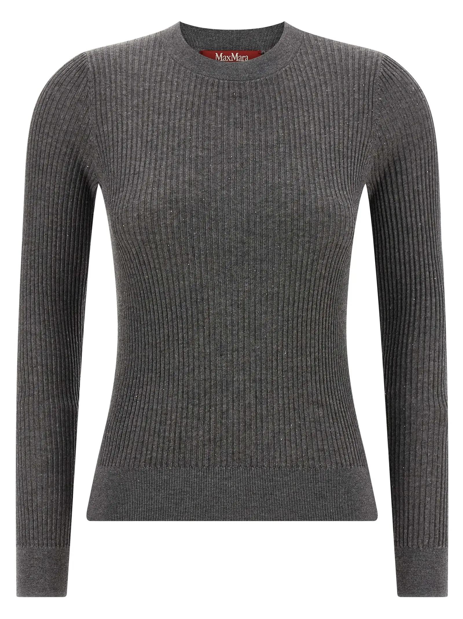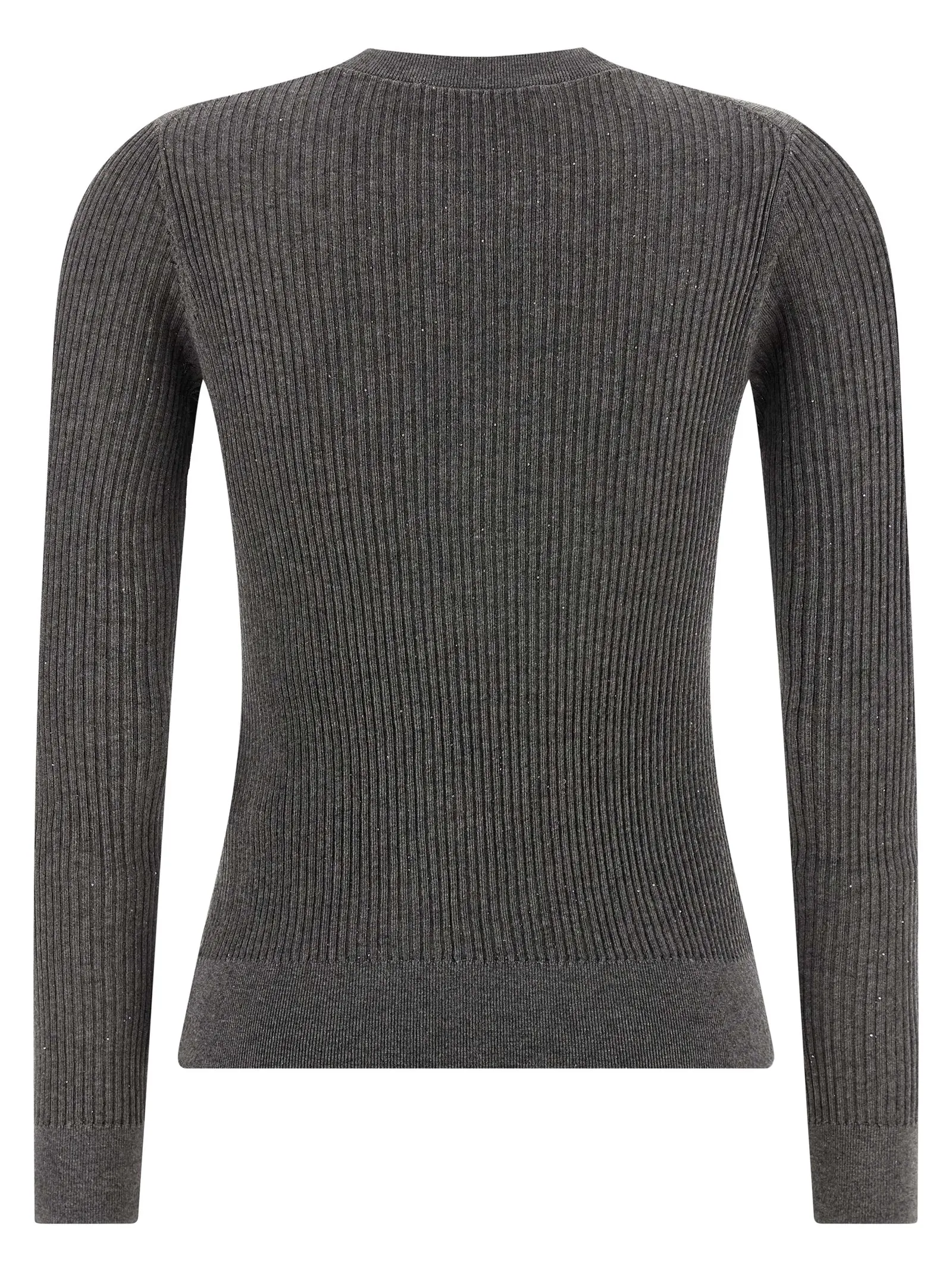Вишуканий жіночий светр із суміші шовку та вовни, що поєднує ніжність і тепло, декорований мікроскопічними паєтками для делікатного блиску. Ребристий в’язаний візерунок, круглий виріз і довгі рукави створюють універсальний образ вишуканого стилю та неперевершеного статусу.