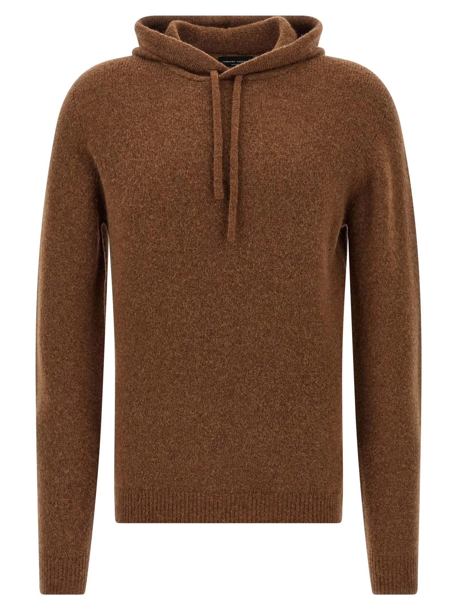 Вишуканий чоловічий светр із капюшоном від Roberto Collina виконаний з високоякісної суміші вовни першого сорту та верблюжої шерсті, що забезпечує неймовірну м’якість і тепло. Елегантний коричневий відтінок, довгі рукави з манжетами та продуманий дизайн гармонійно поєднують комфорт і статусний стиль, підкреслюючи інноваційність та універсальність виробу.